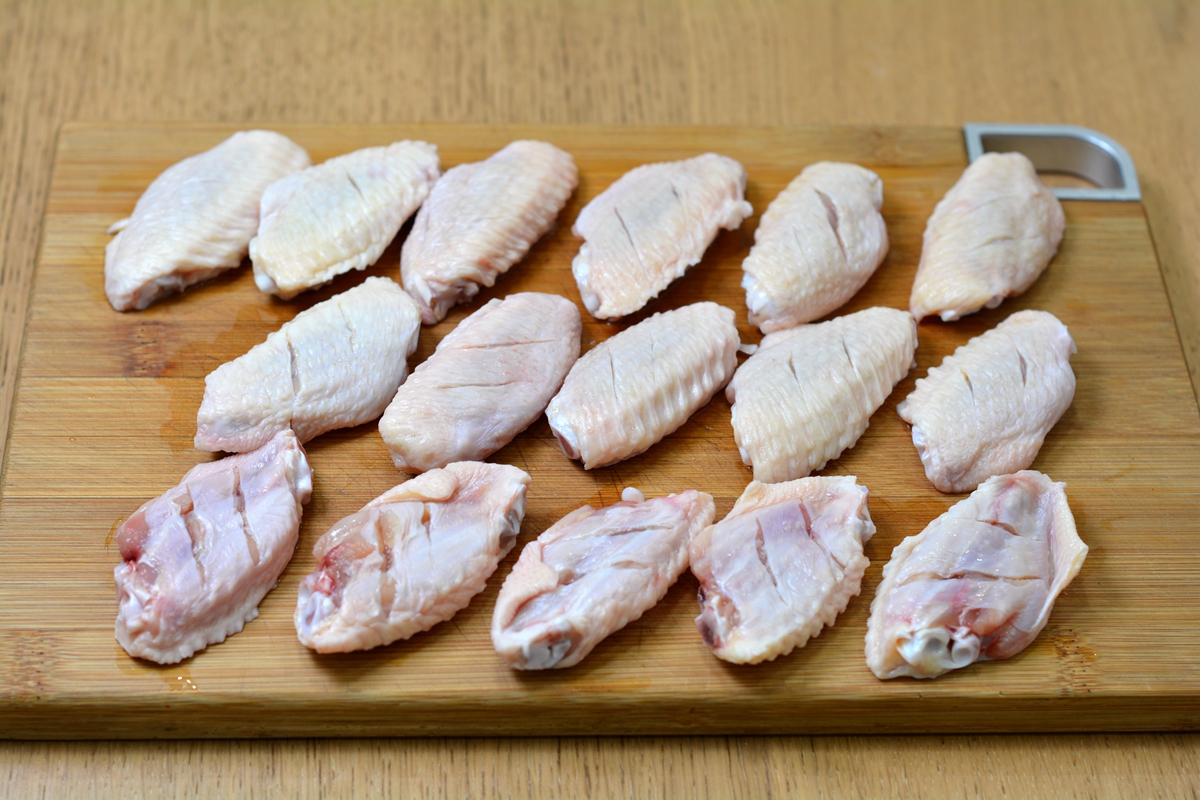 3. 用利刀将鸡翅两面各划两刀,便于腌制时入味儿;