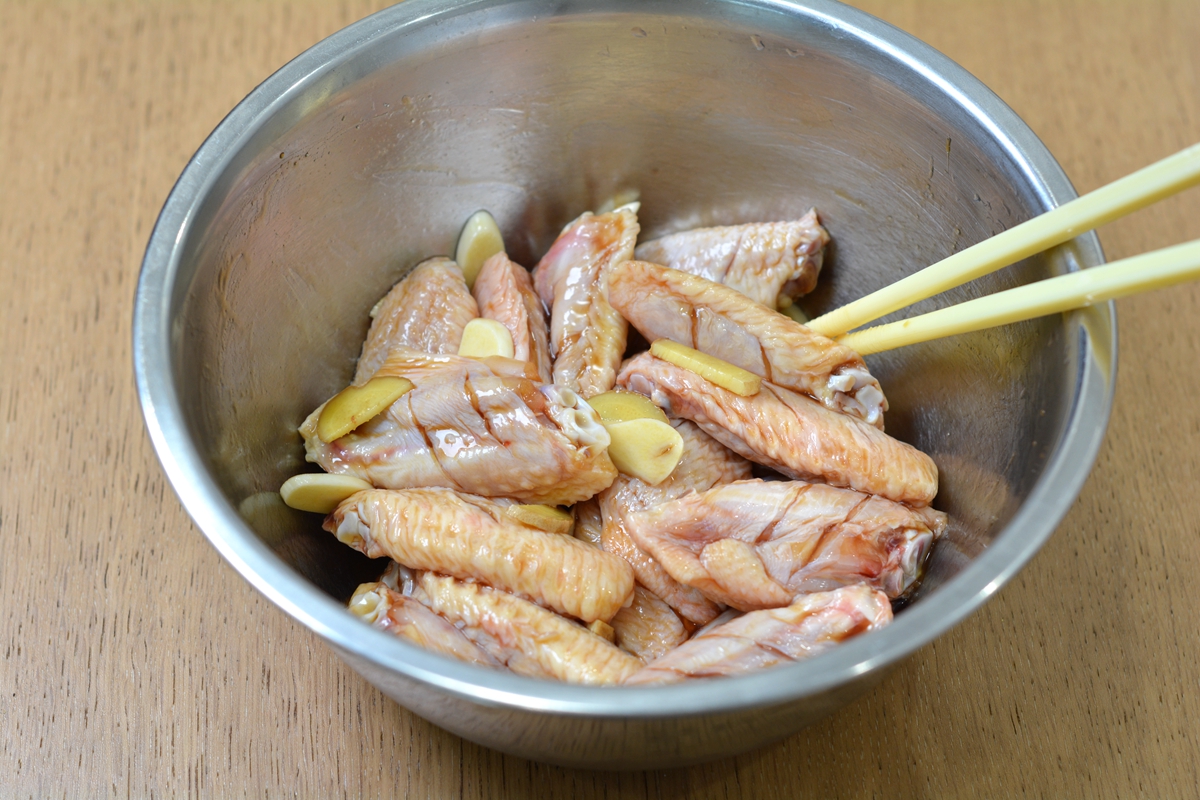 5. 腌制至少1小时,中途可翻拌两次均匀入味;如果着急吃,可以用手按摩鸡翅加速调料吸,但也要至少30分钟才好;