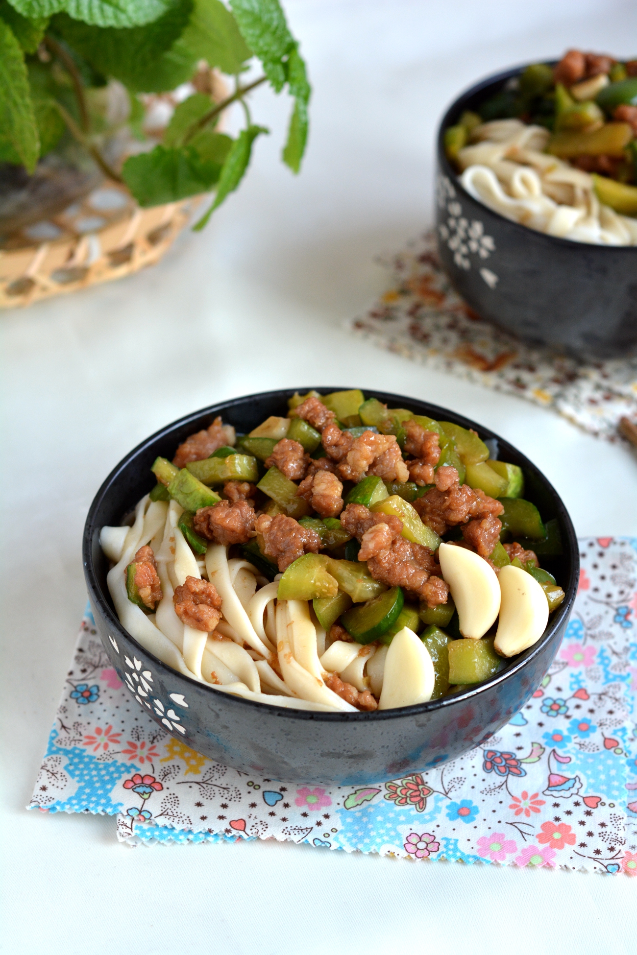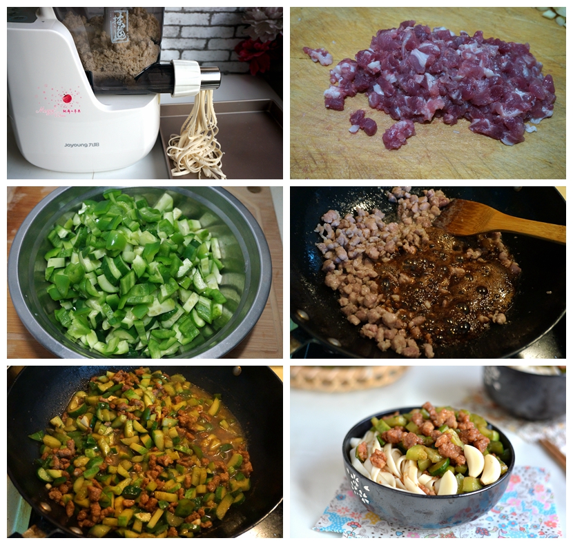 材料:猪肉250克,黄瓜数根,青椒2个,大蒜5瓣,酱油适量,盐量,料酒,淀粉一小勺,面粉400克,面粉用清水150克