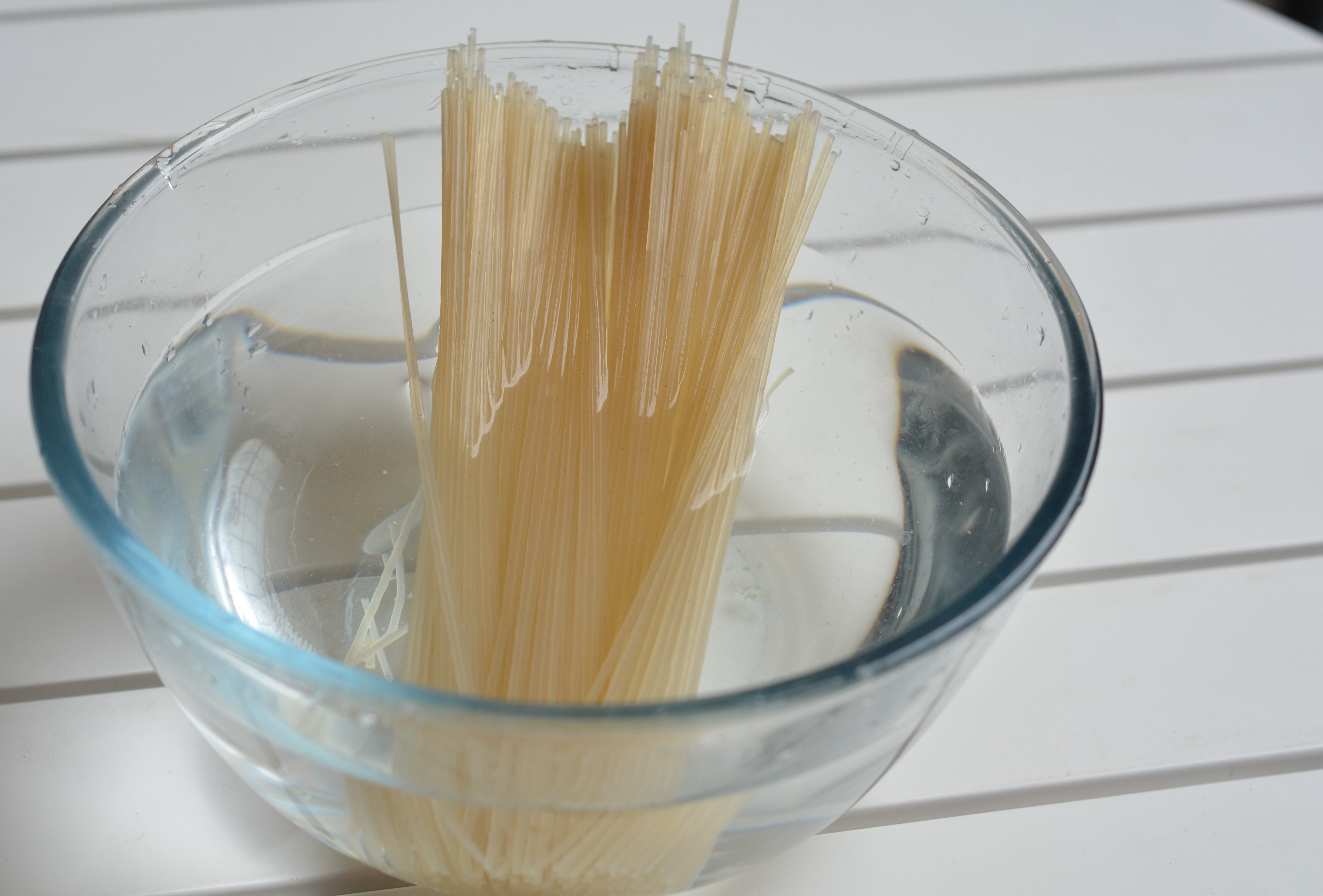 1. 干米粉泡凉水,充分泡软再使用;