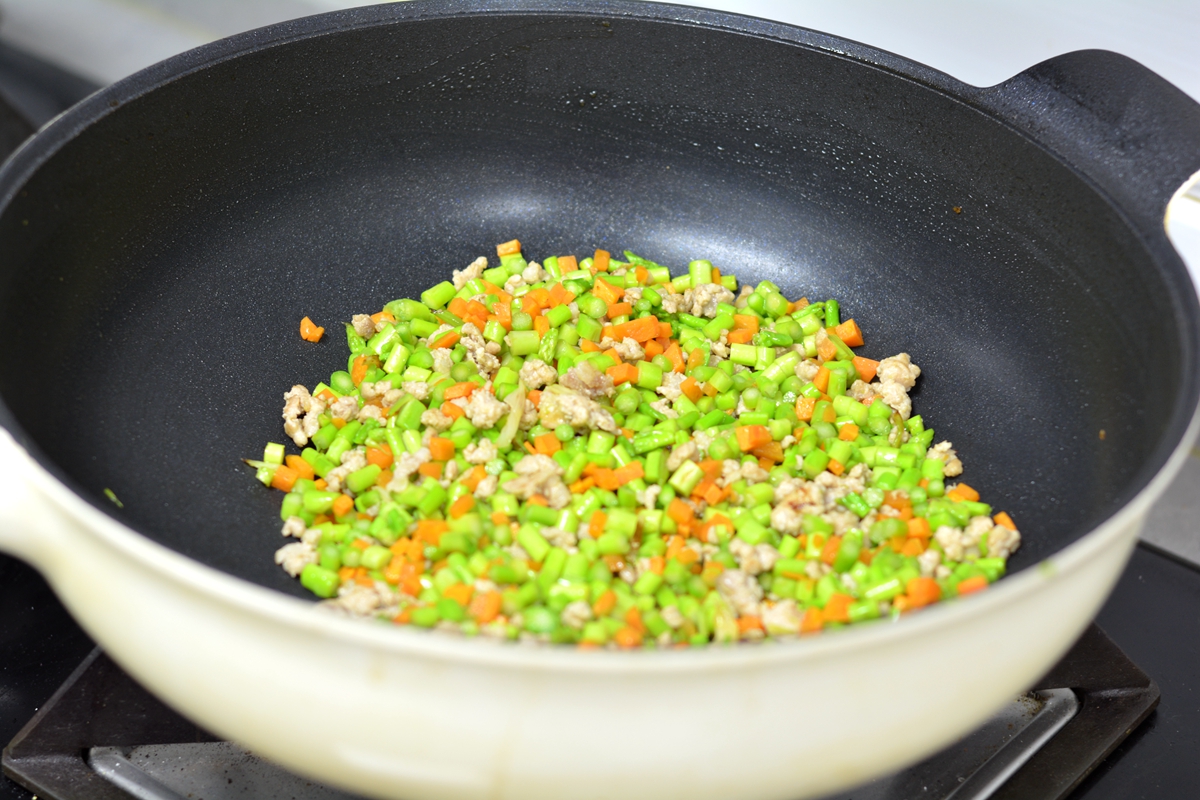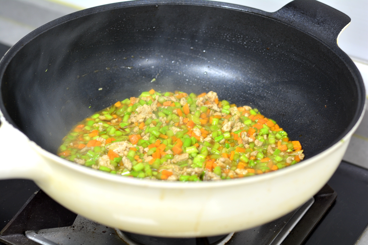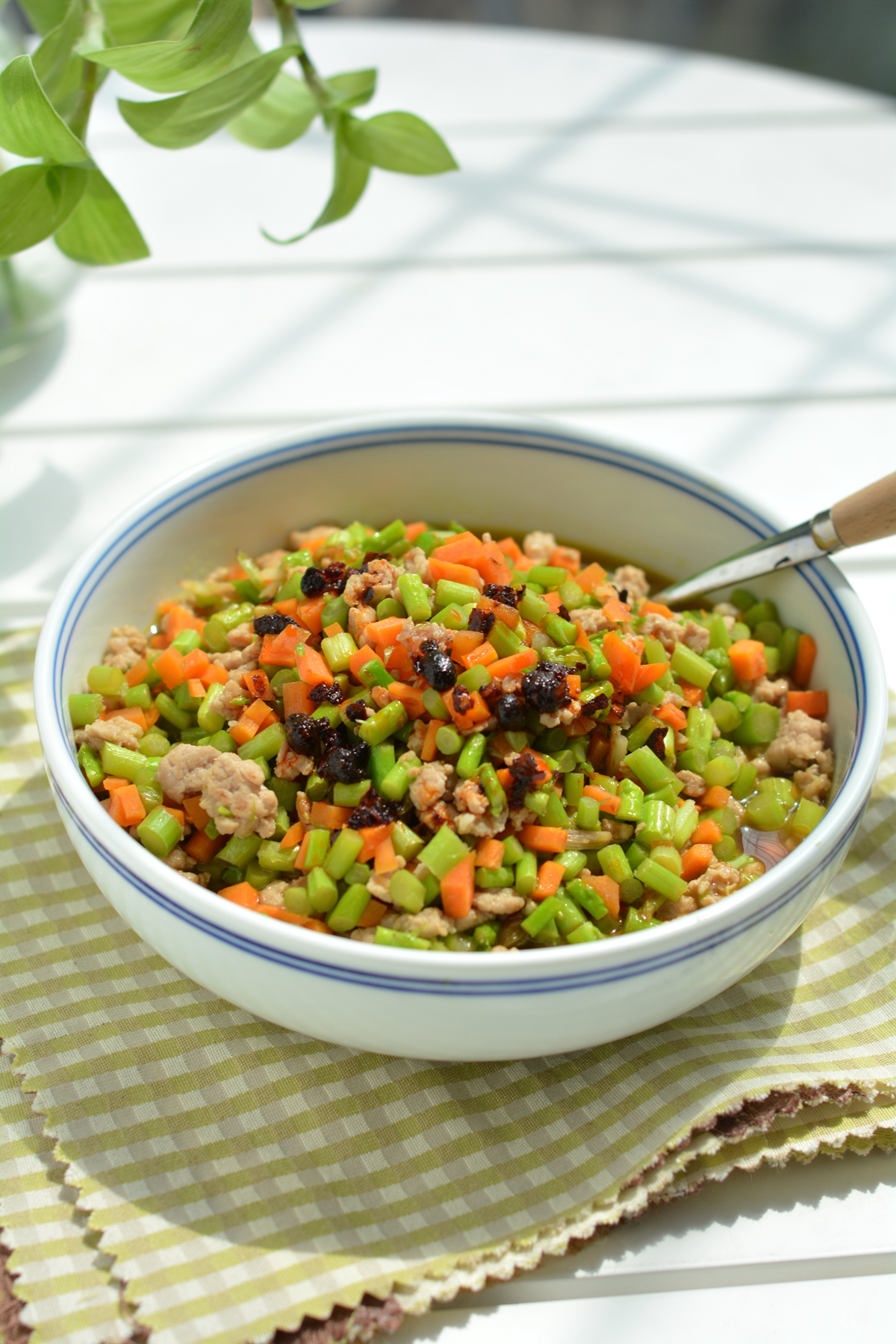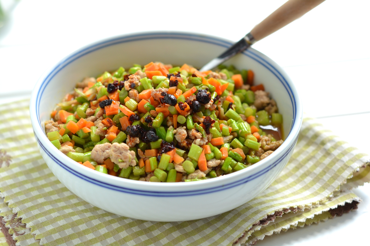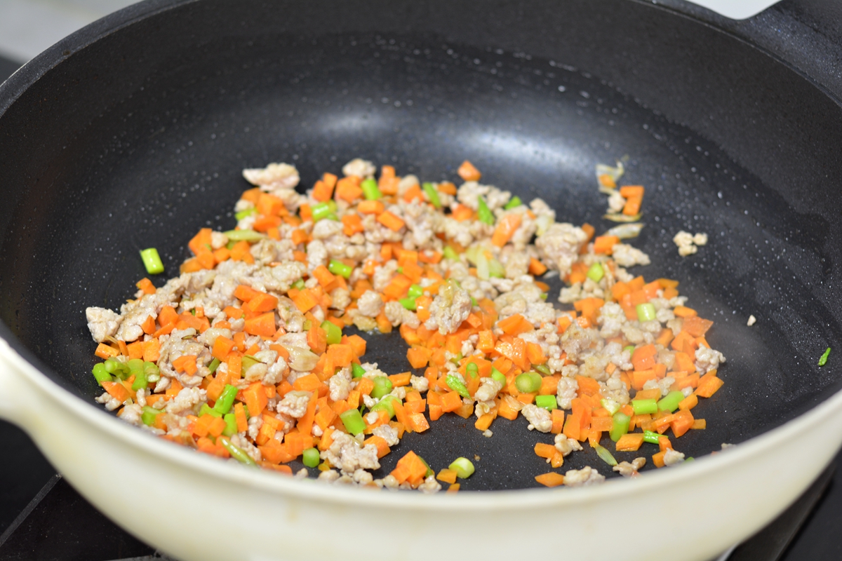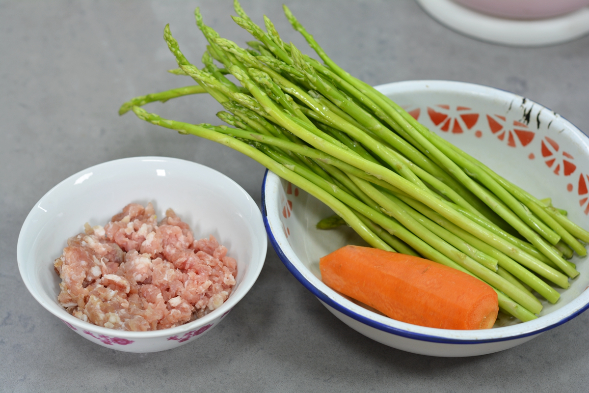 材料:肉馅1小碗,芦笋1把,胡萝卜1根,油适量,辣豆豉2勺,酱油少许,蚝油少许,料酒少许,葱花少许