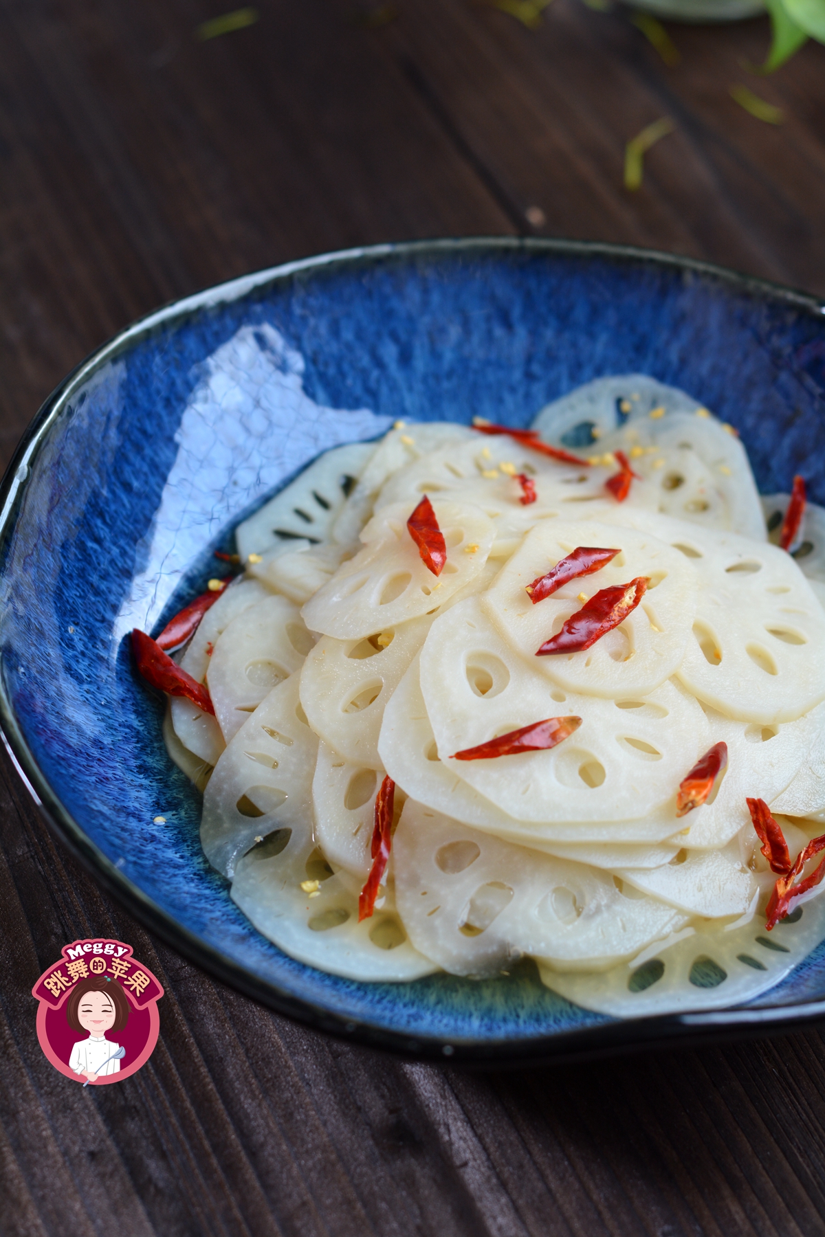8. 再把擦洗干净的干红辣椒剪成丝放在藕片里,当时吃没有什么味道,腌一会不但能酸甜辣味进到藕片里,藕片还会变得脆嫩嫩的,所以前面为嘛要强调切薄薄的片。如果不能吃辣的,可以把辣椒丝省略掉。