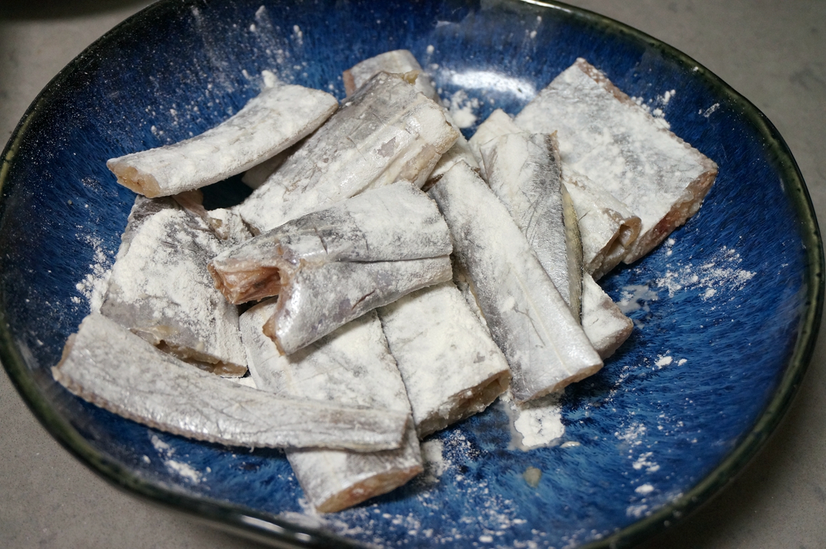材料:带鱼3条,猪油适量,料酒少许,姜1块,八角2颗,大葱半棵,盐少许,白糖1小勺,酱油少许,老抽少许,面粉2小勺,醋少许