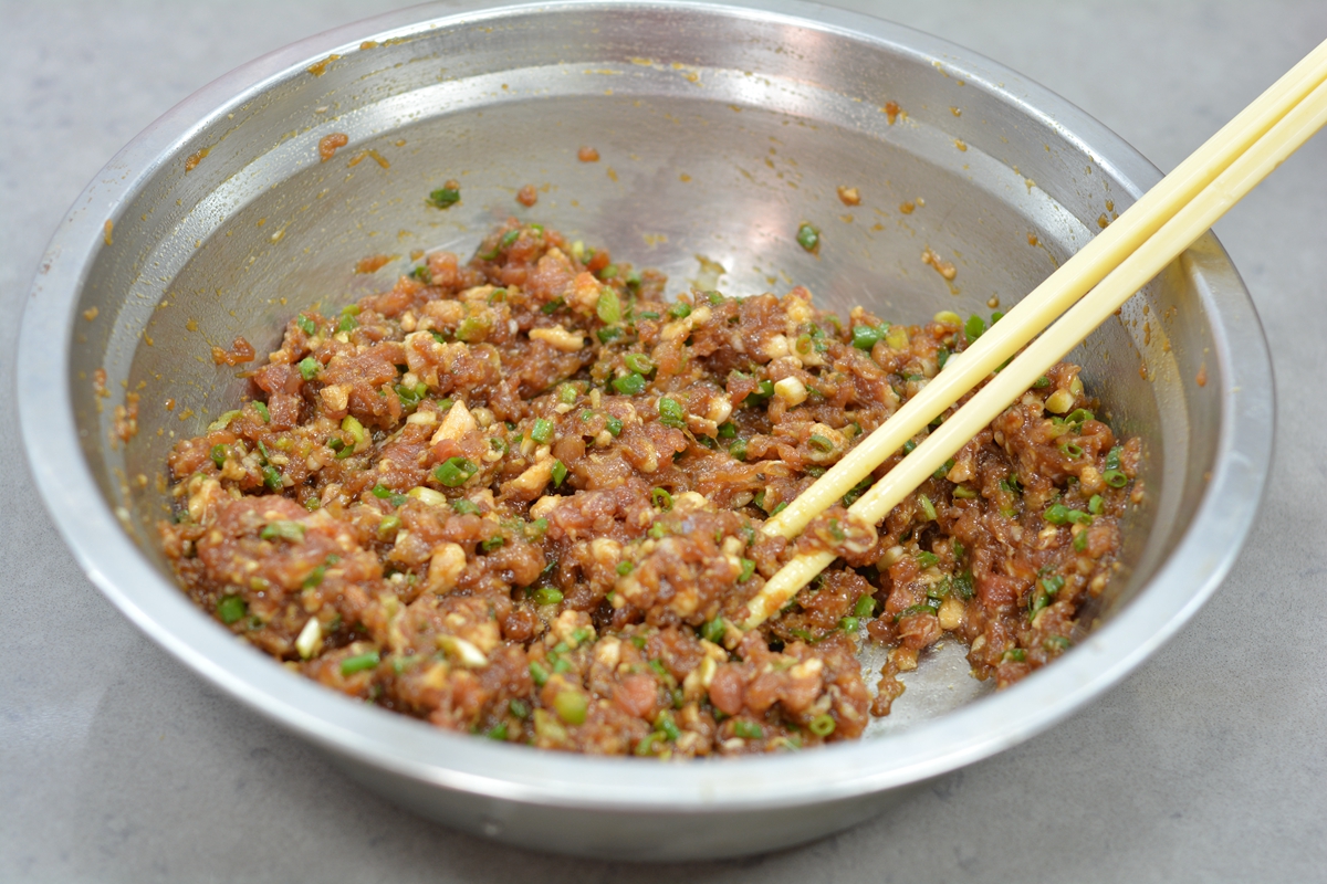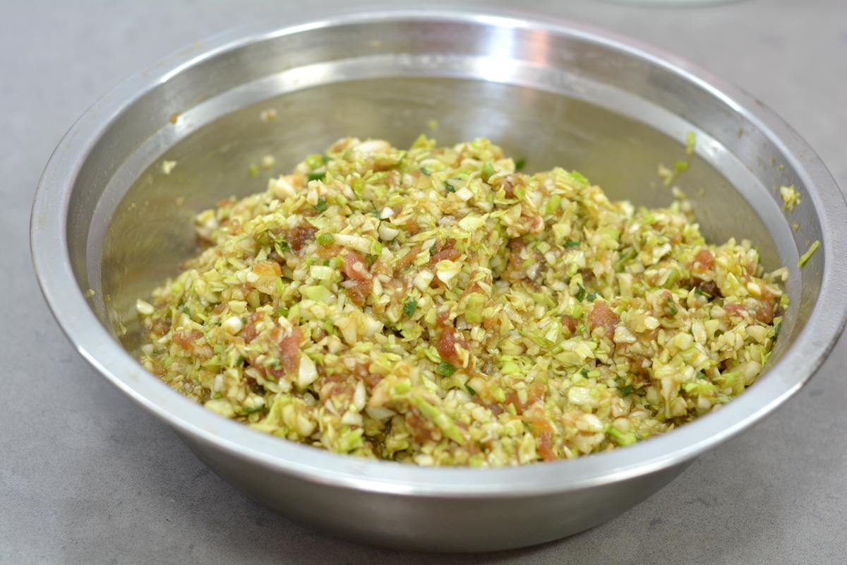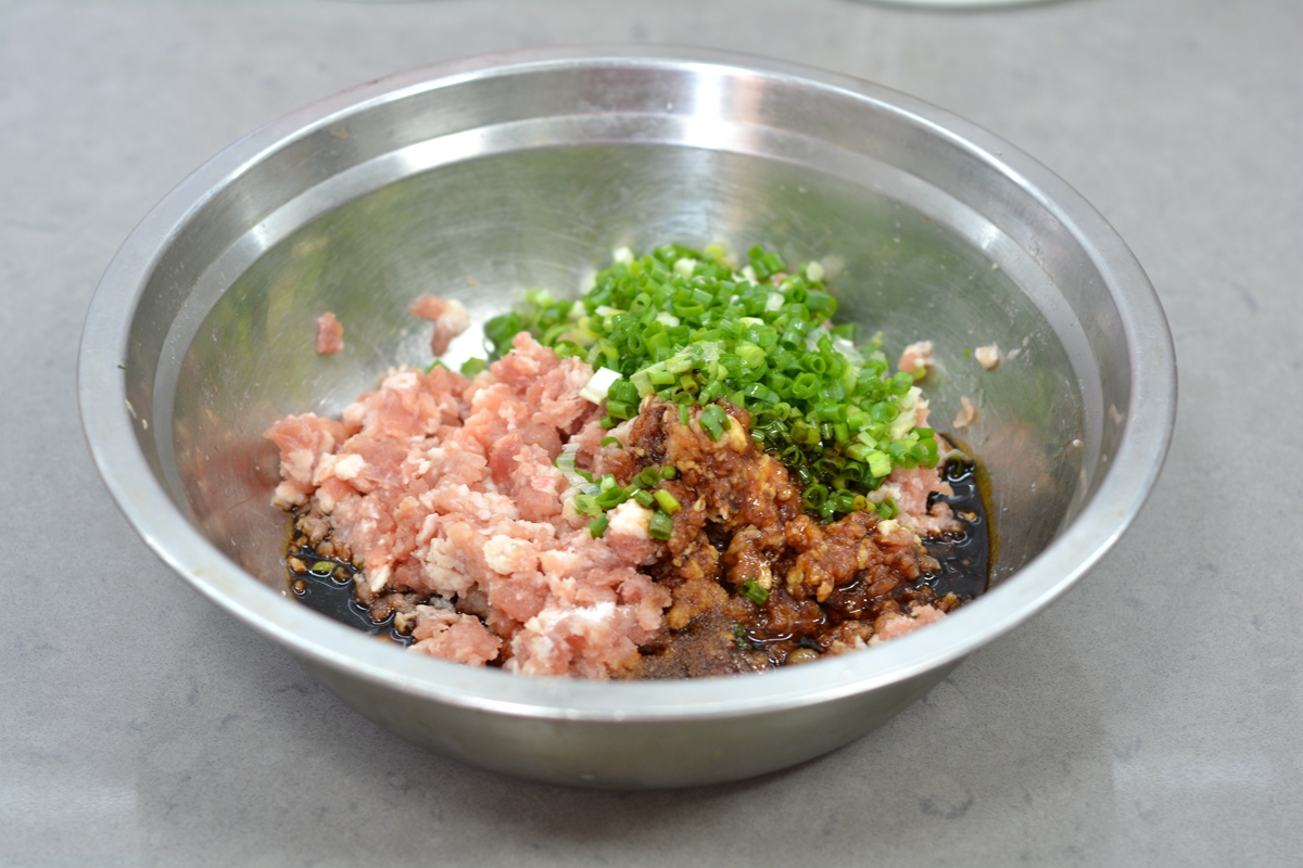 材料:肉馅400克,圆白菜1个,酱油少许,生抽适量,盐适量,香葱5棵,面粉适量,凉水适量