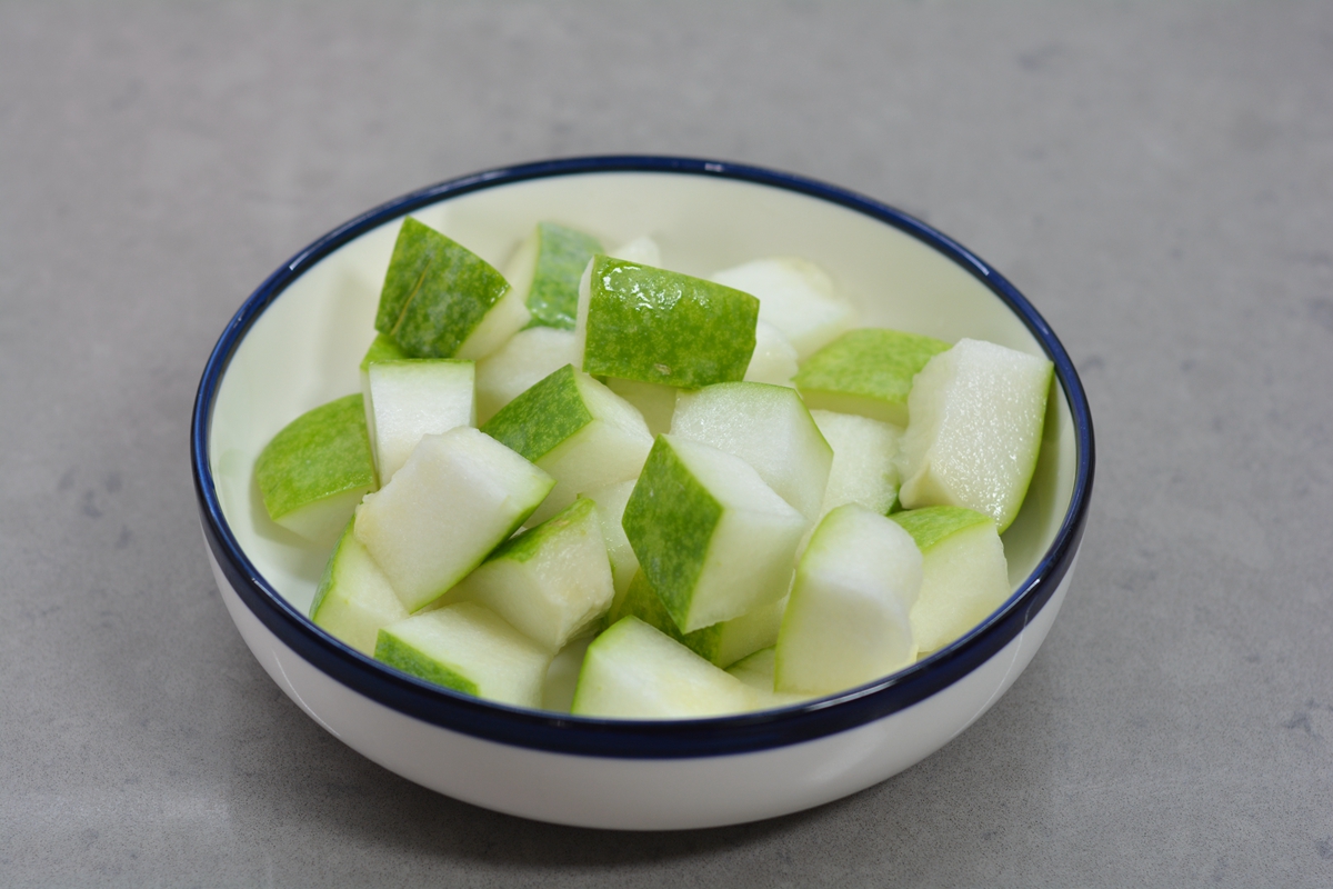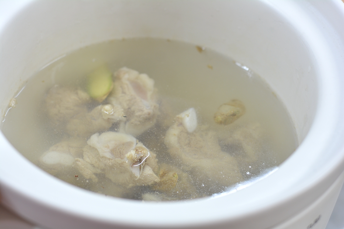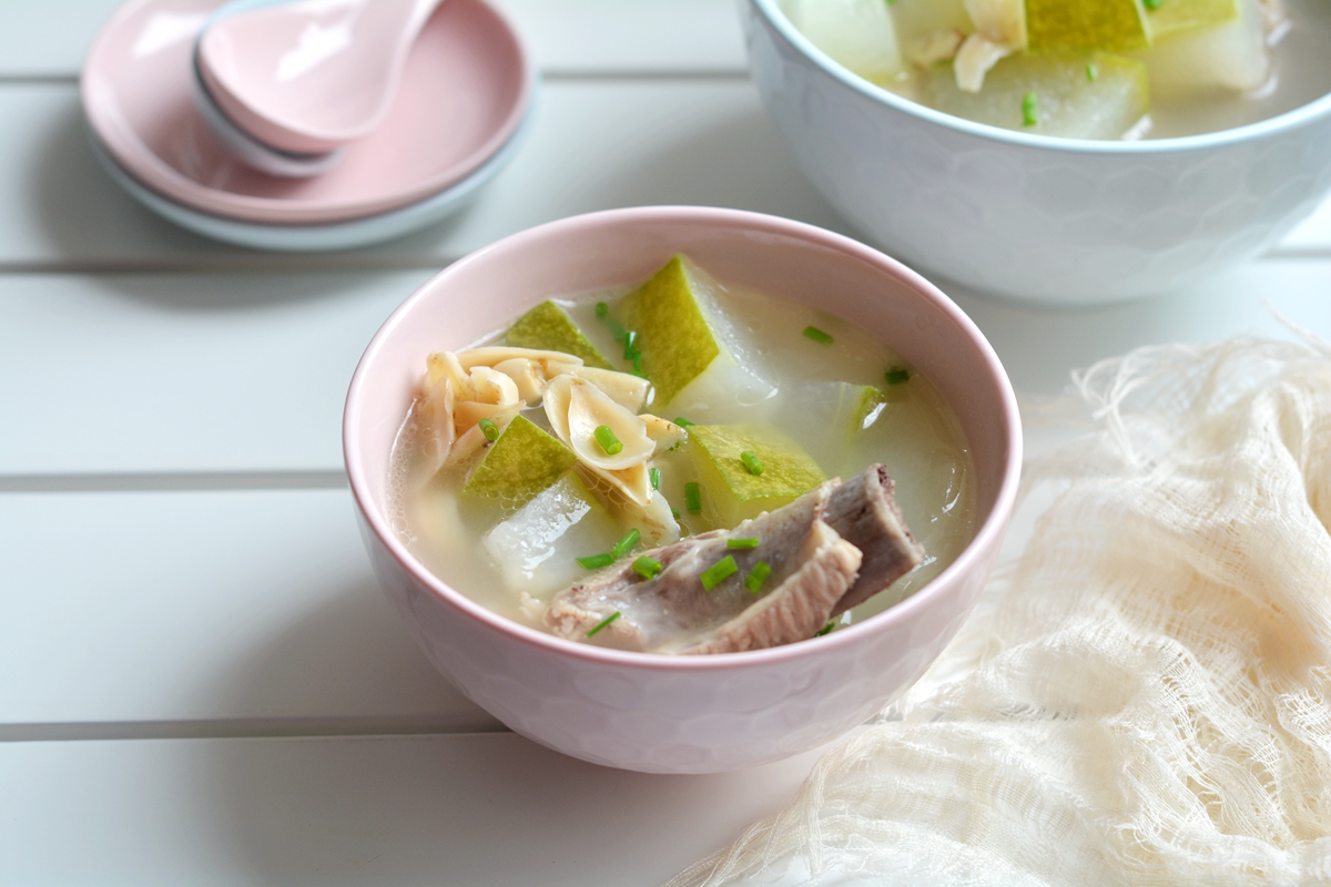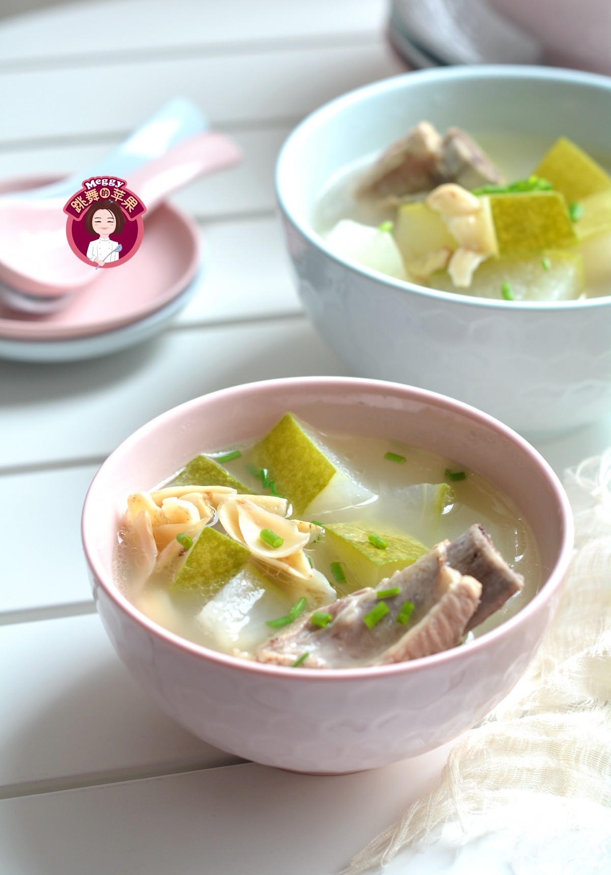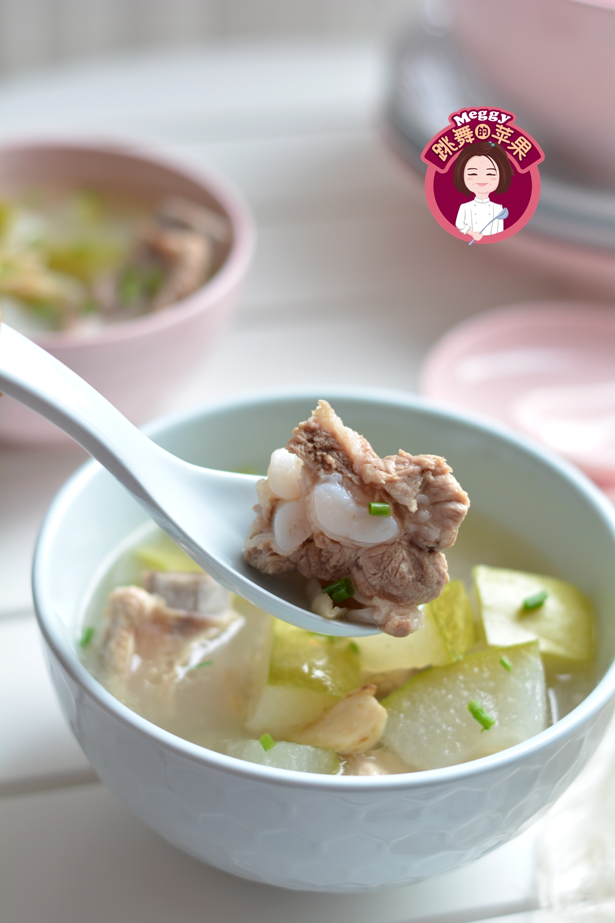 材料:排骨500克,冬瓜500克,干百合1小碗,鲜姜2片,盐少许,水适量