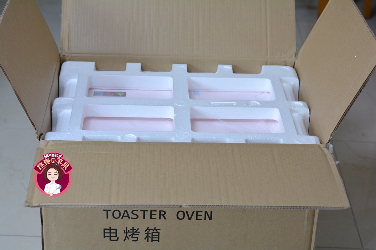 打开包装箱,很厚实的泡沫保护架,已经能看到烤箱是嫩嫩的粉了。