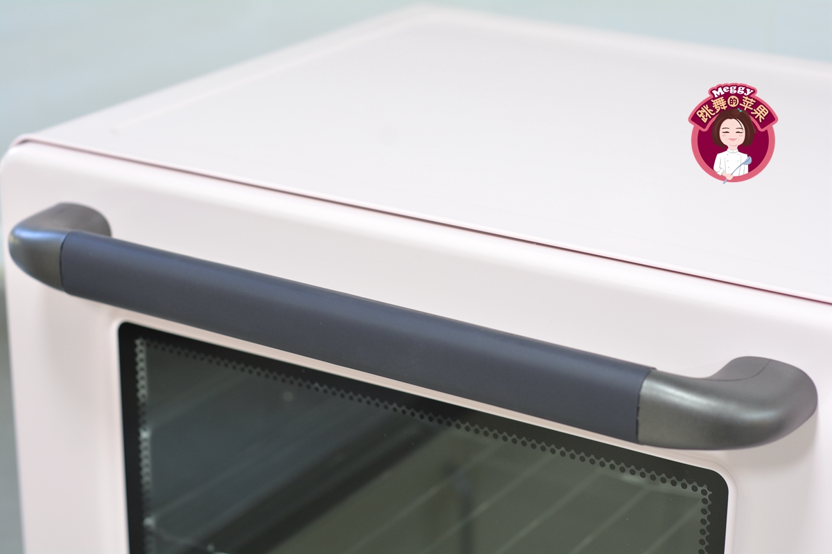 烤箱门上方的磨砂拉手,深浅灰色与粉色呼应,看着舒服,手感也不错。