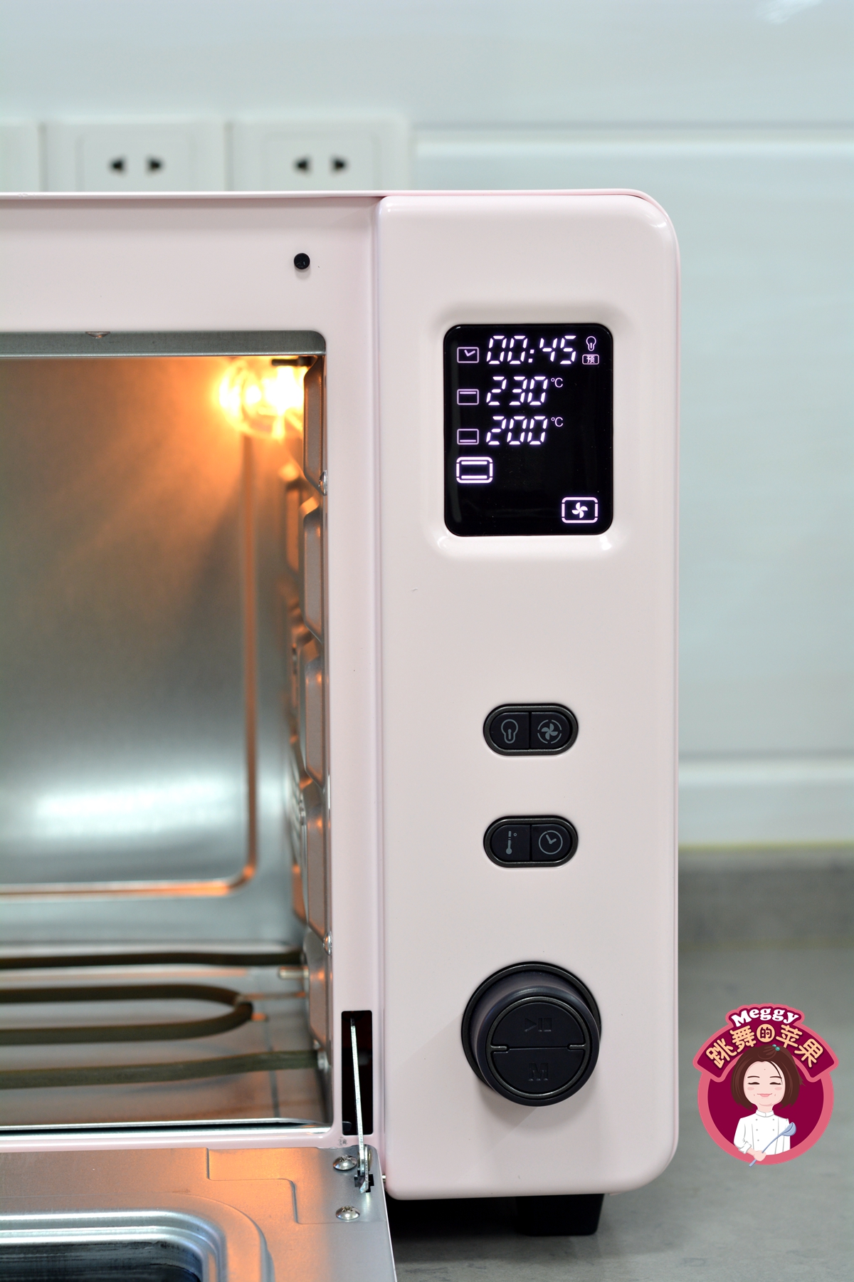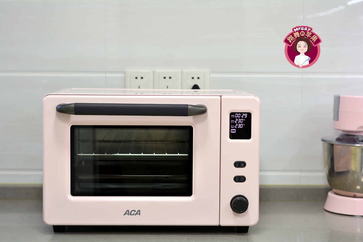 更让人喜欢的是它的智能预热功能。很多烤箱都是预热时间要自己掐表算,而这台ACA烤箱却可以在设定好时间后把预热时间自己控制好,当温度到达时,它会发出嘀嘀的警报声,这个设计真是太贴心了!