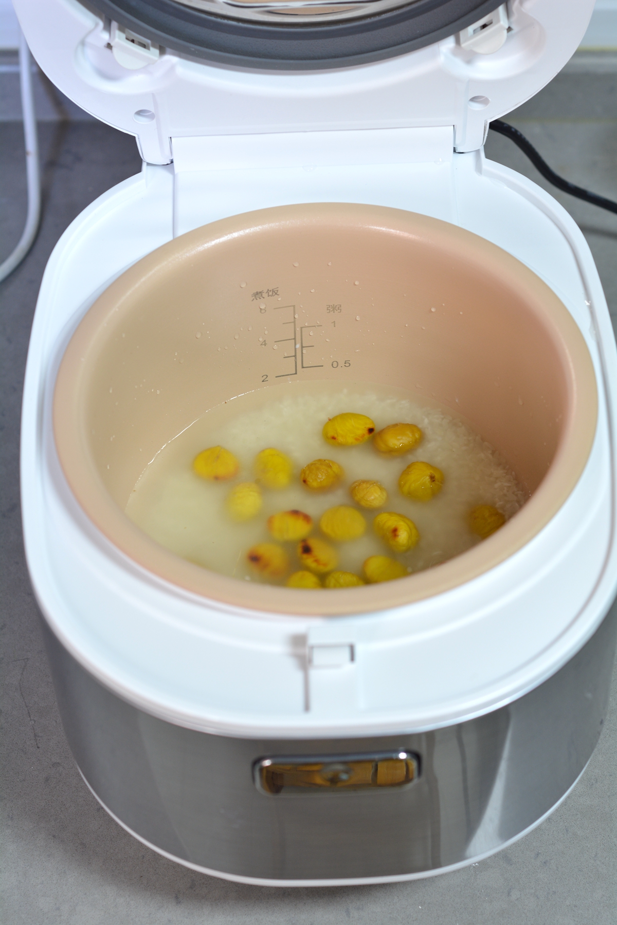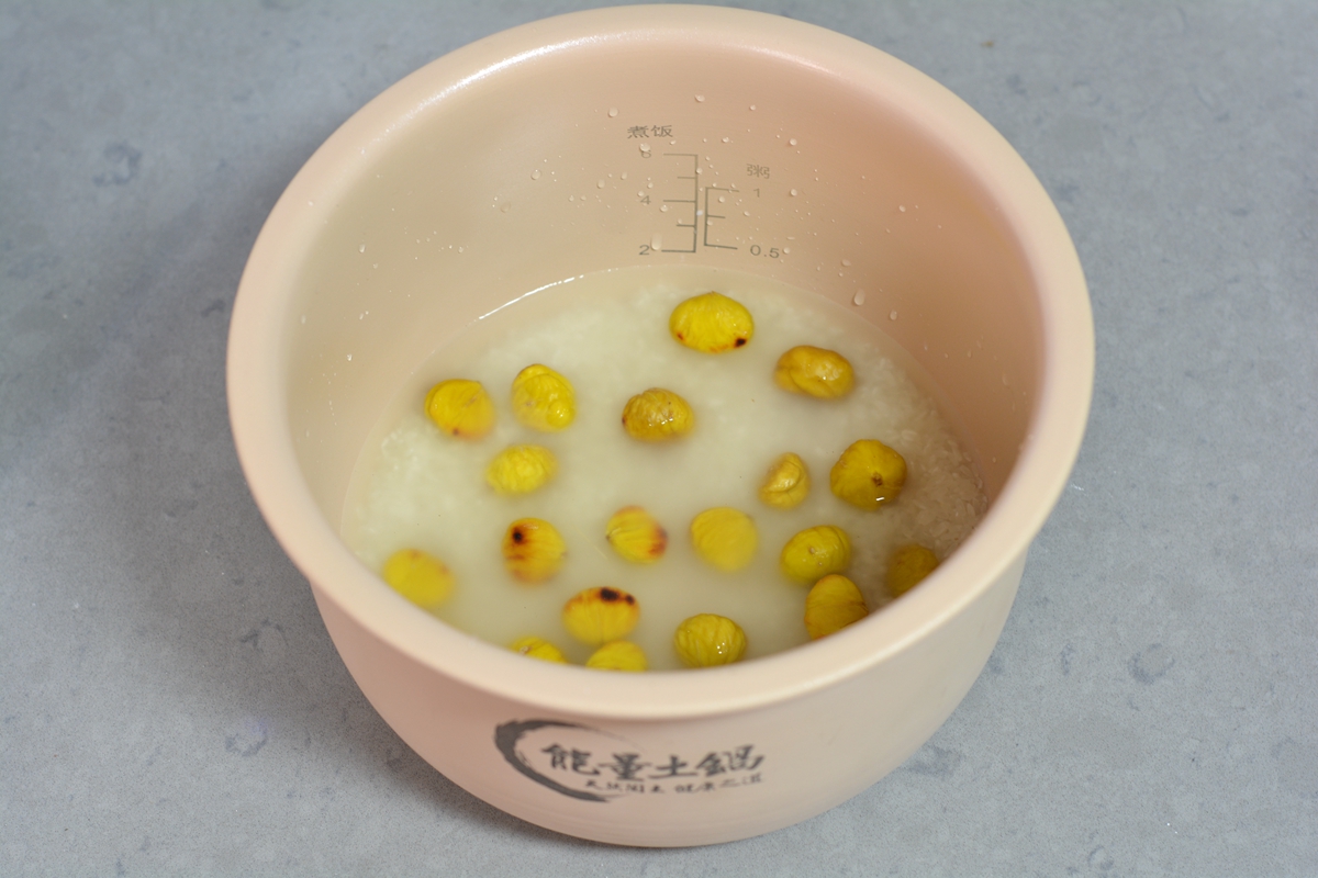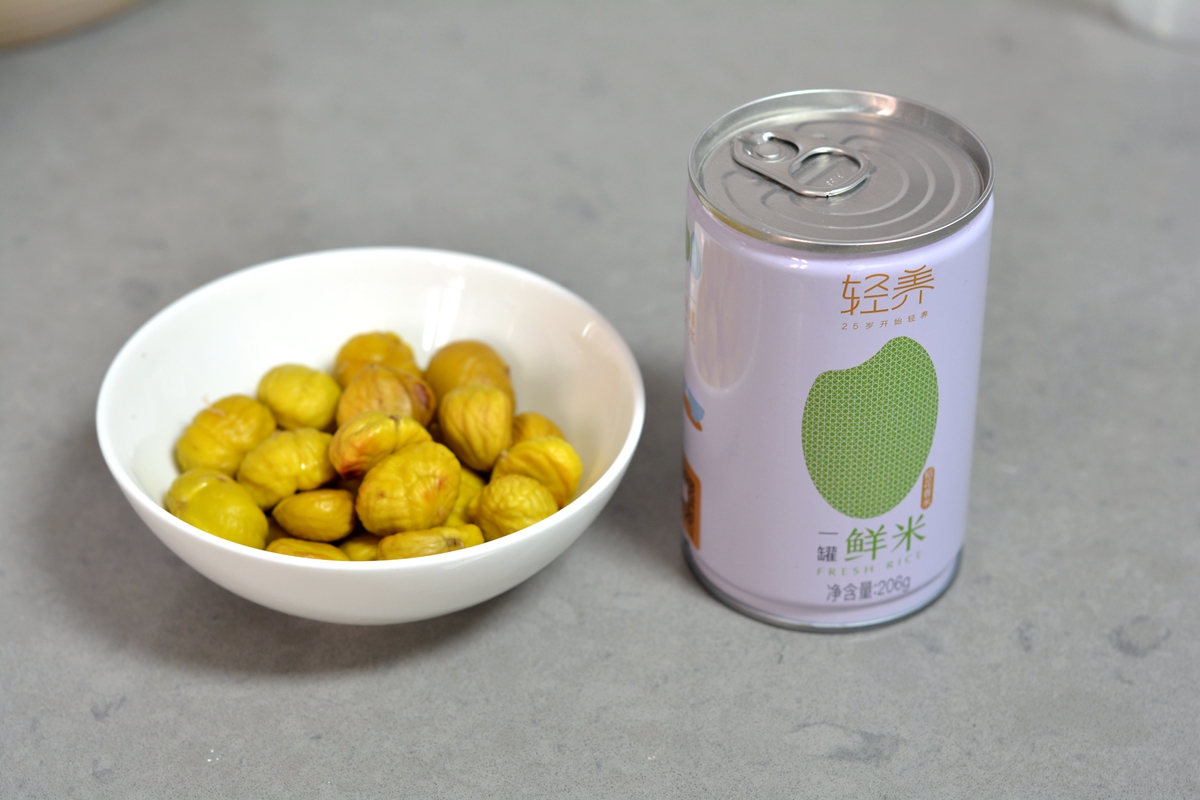材料:大米200克,栗子30颗左右,凉水适量