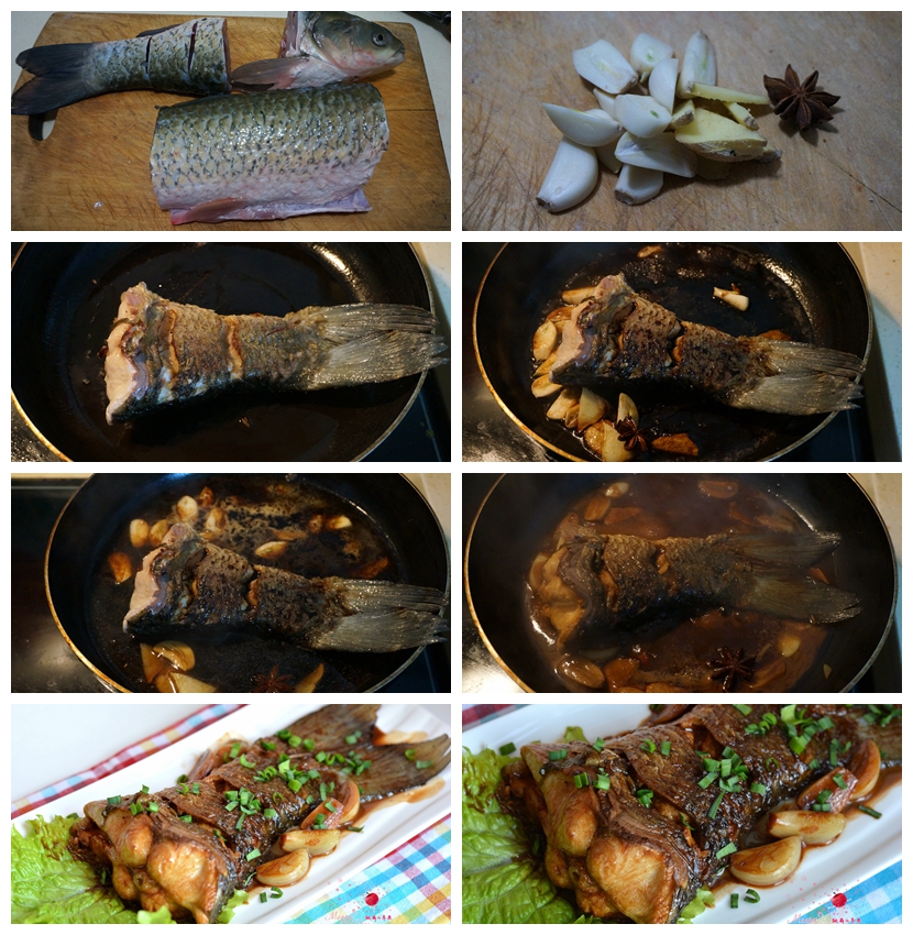 1. 草鱼一条,收拾干净后,分成头,身,尾三段,本道菜只取尾部,尾部两面切花刀便于入味;