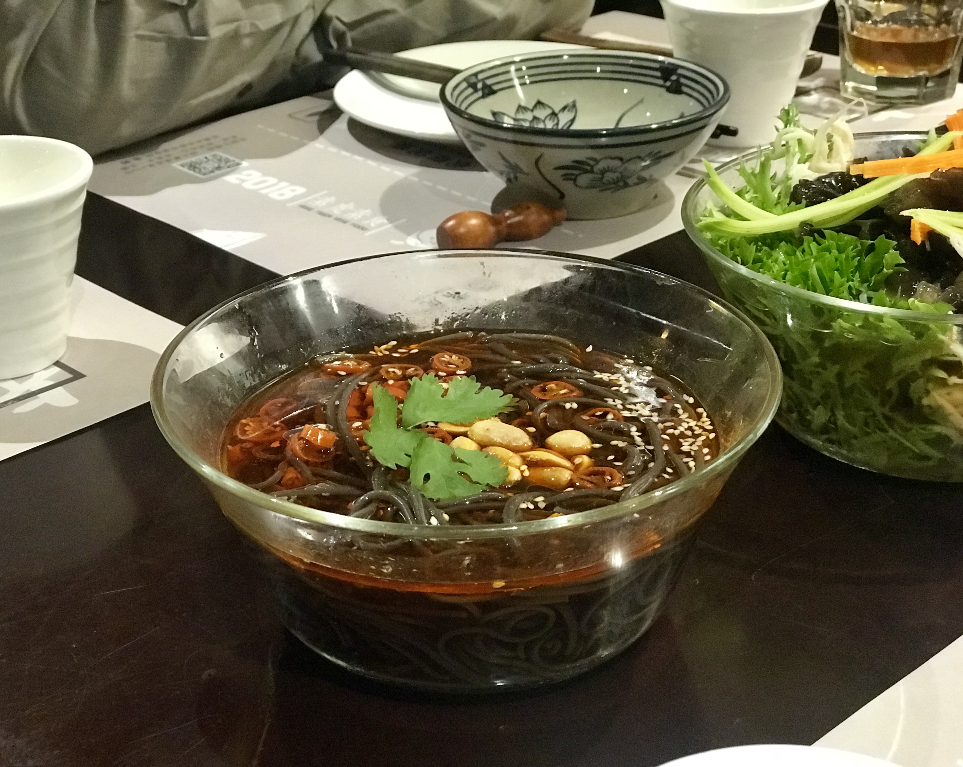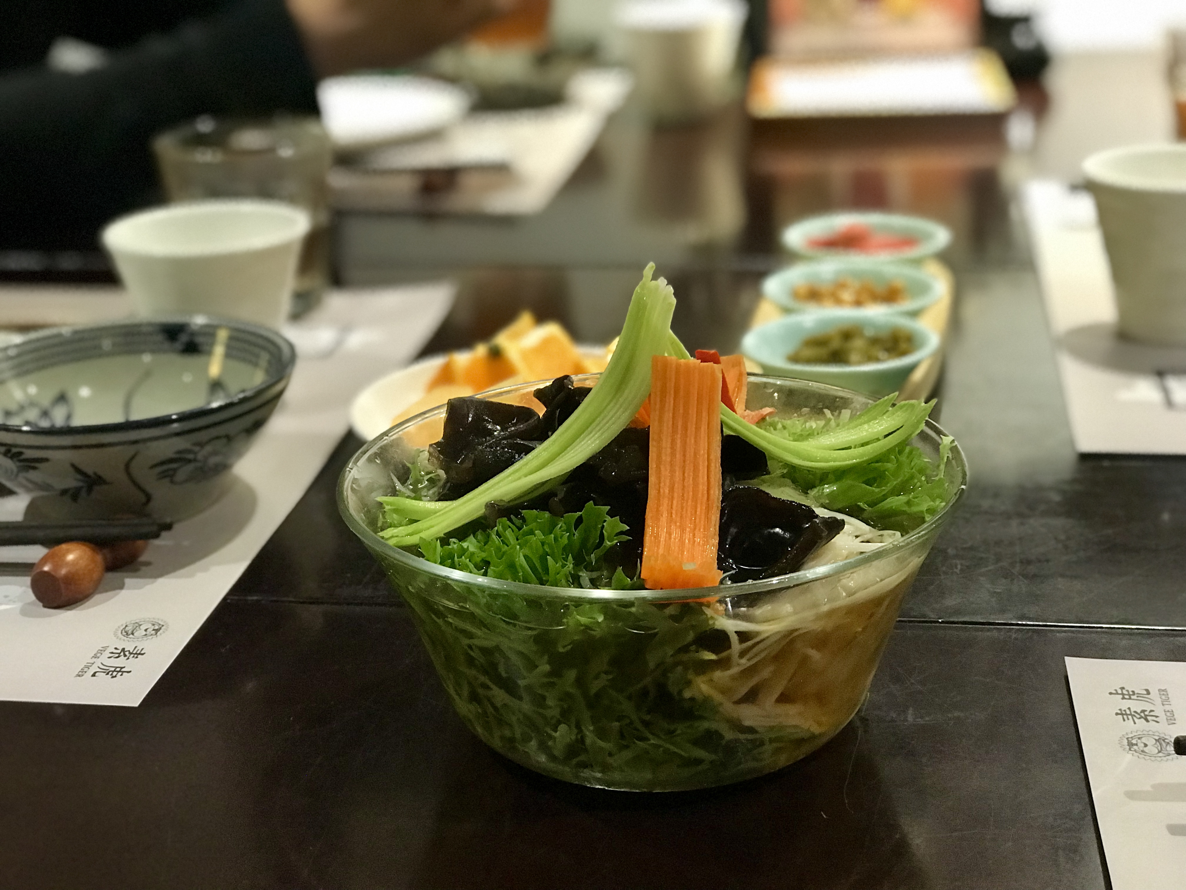凉菜之一是捞汁拌菜,酸甜口的好开胃,里面有苦苣、木耳、金针菇、西芹杆、胡萝卜,冰凉的捞汁混着蔬菜进入口中,清凉又开胃。