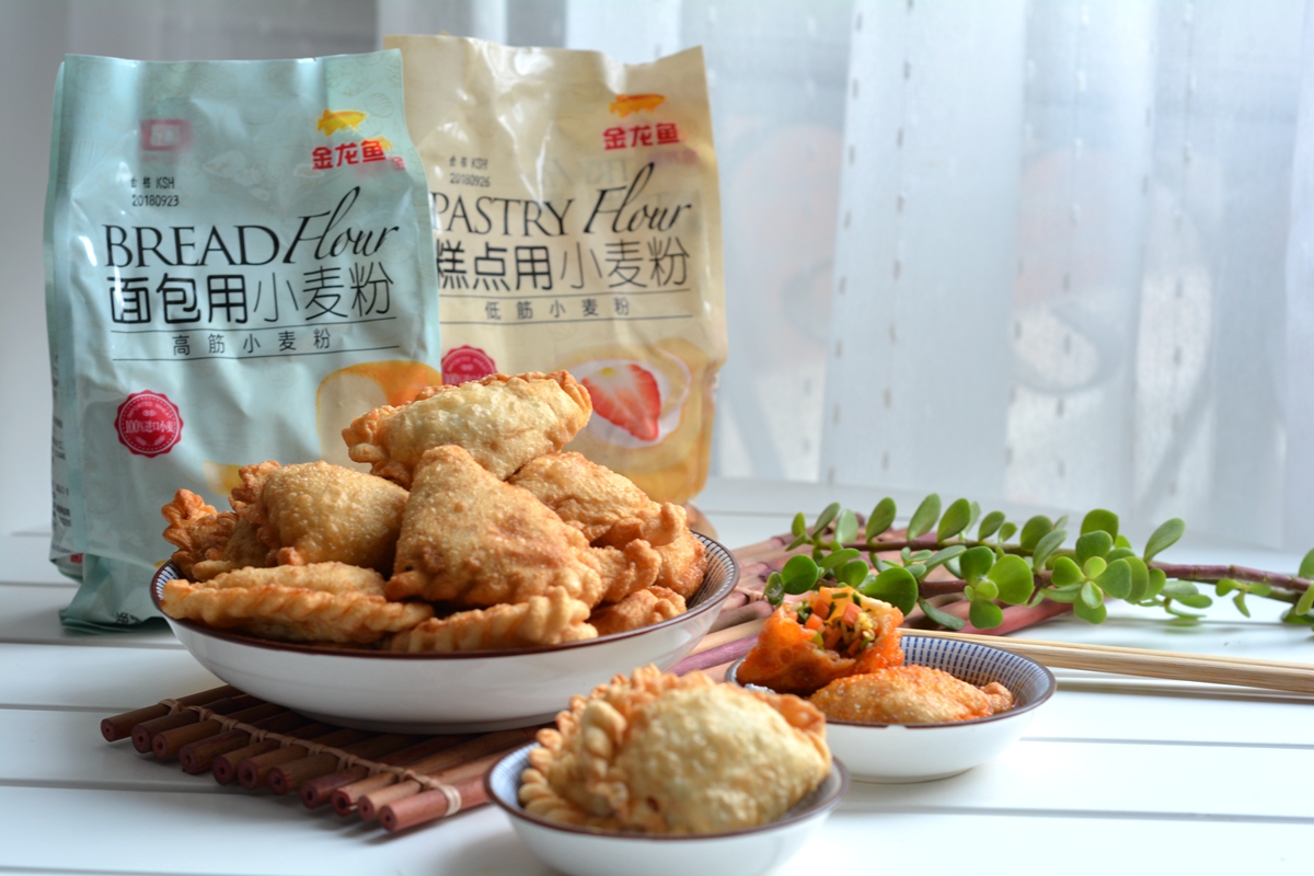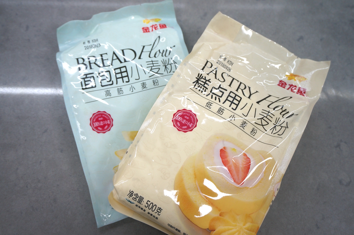 面皮材料:金龙鱼高筋小麦粉100克,金龙鱼低筋小麦粉100克,温水130克