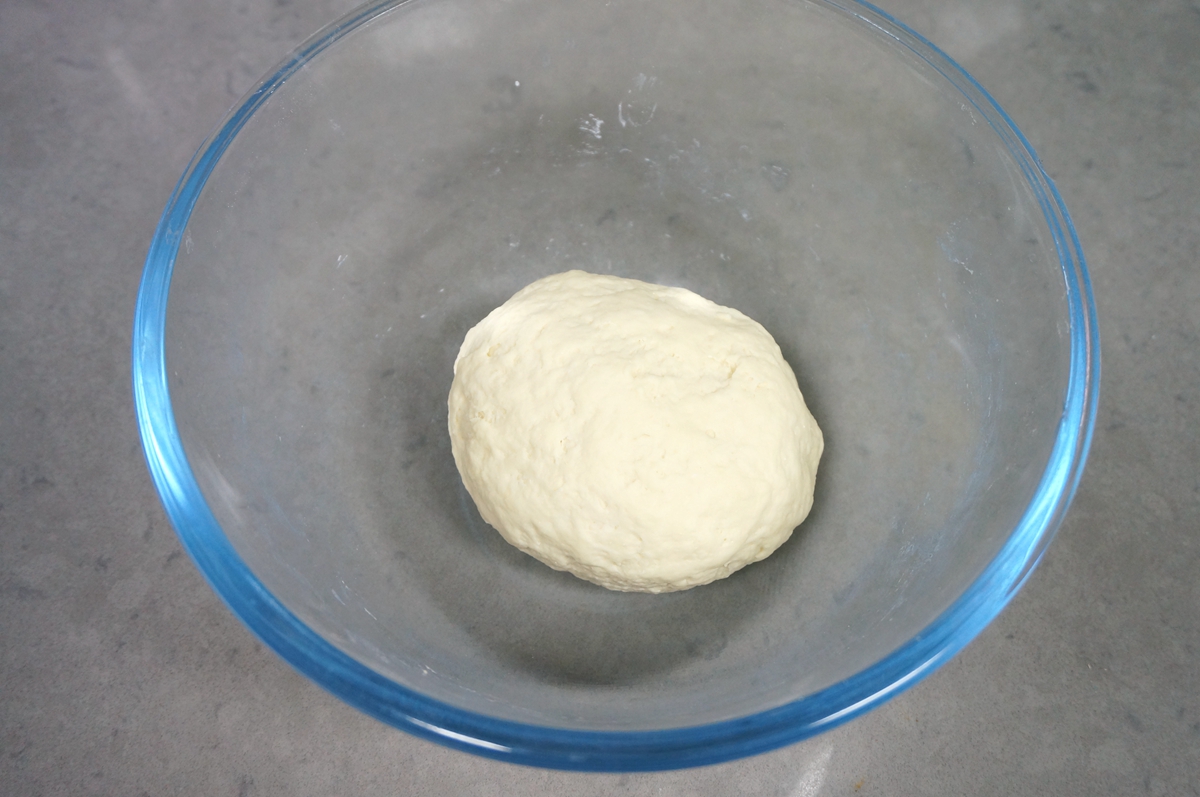 2. 先用筷子搅拌成絮状,再手揉成较光滑的面团,蒙保鲜膜在温暖湿润处进行基础发酵;