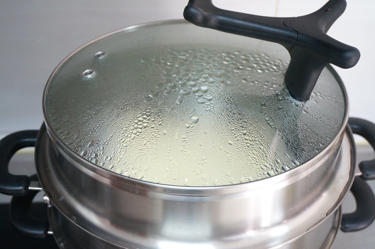 13. 面饼比之前变得圆润些了,开大火,上汽后蒸20分钟;时间到后先不要着急揭盖,焖5分钟再开盖,表面面皮光滑不皱。