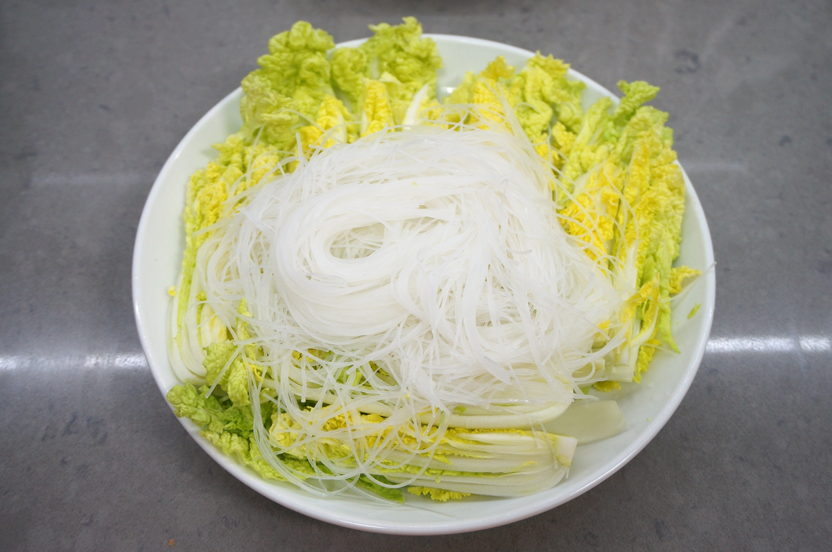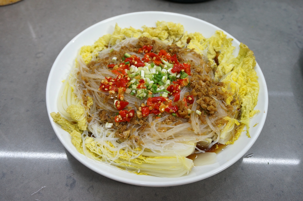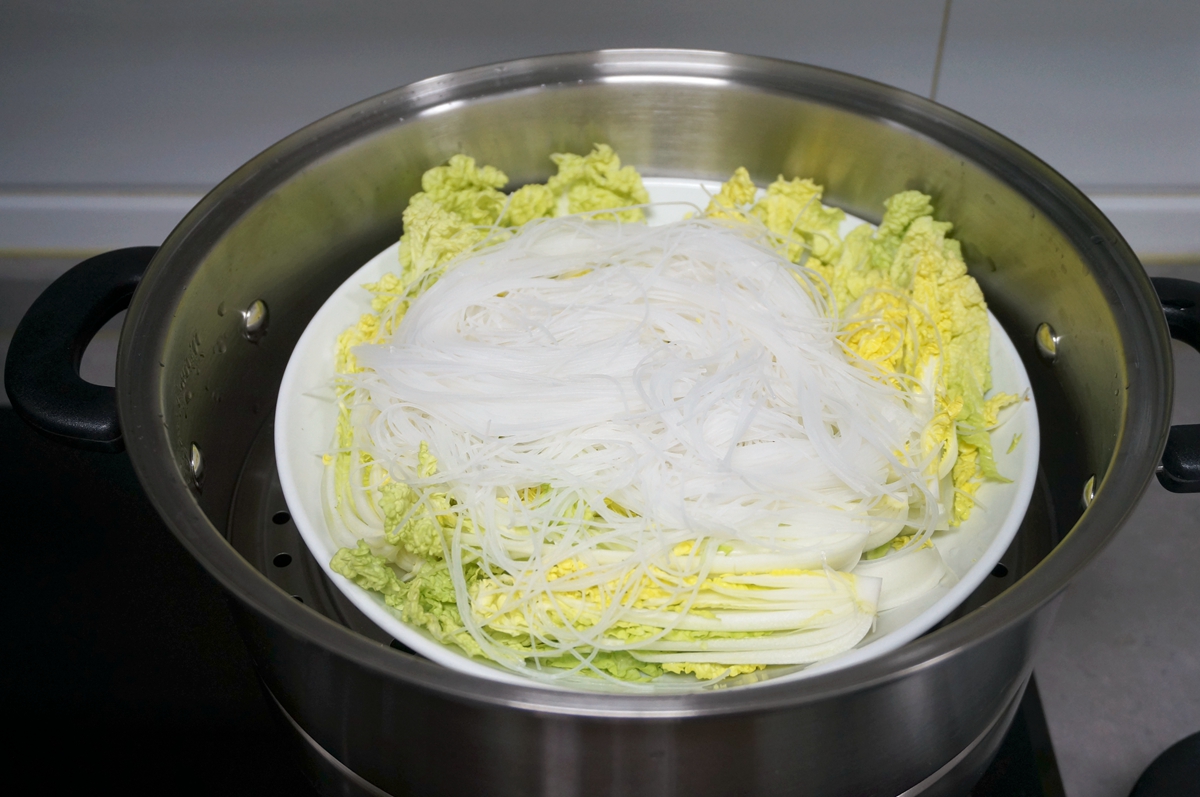 娃娃菜一般都是按3棵一袋装好的,夏天5块钱一袋,冬天8块到10块钱一袋。吃火锅或者做汤时常用它,但今天我用它做一道开胃好吃的娃娃菜蒸粉丝。这是一道饭店常见菜,价格一般都在18元以上。其实自己在家做,连6块钱都超不过。口味也能随时调整,剁椒的,蒜茸的,豆豉的,想怎么折腾就怎么折腾。粉丝用龙口粉丝,一根根一丝丝互不粘连,口感还筋道。想省事直接淋上生抽或者蒸鱼豉油,不嫌麻烦就炒点蒜末熬点料汁更有滋味。