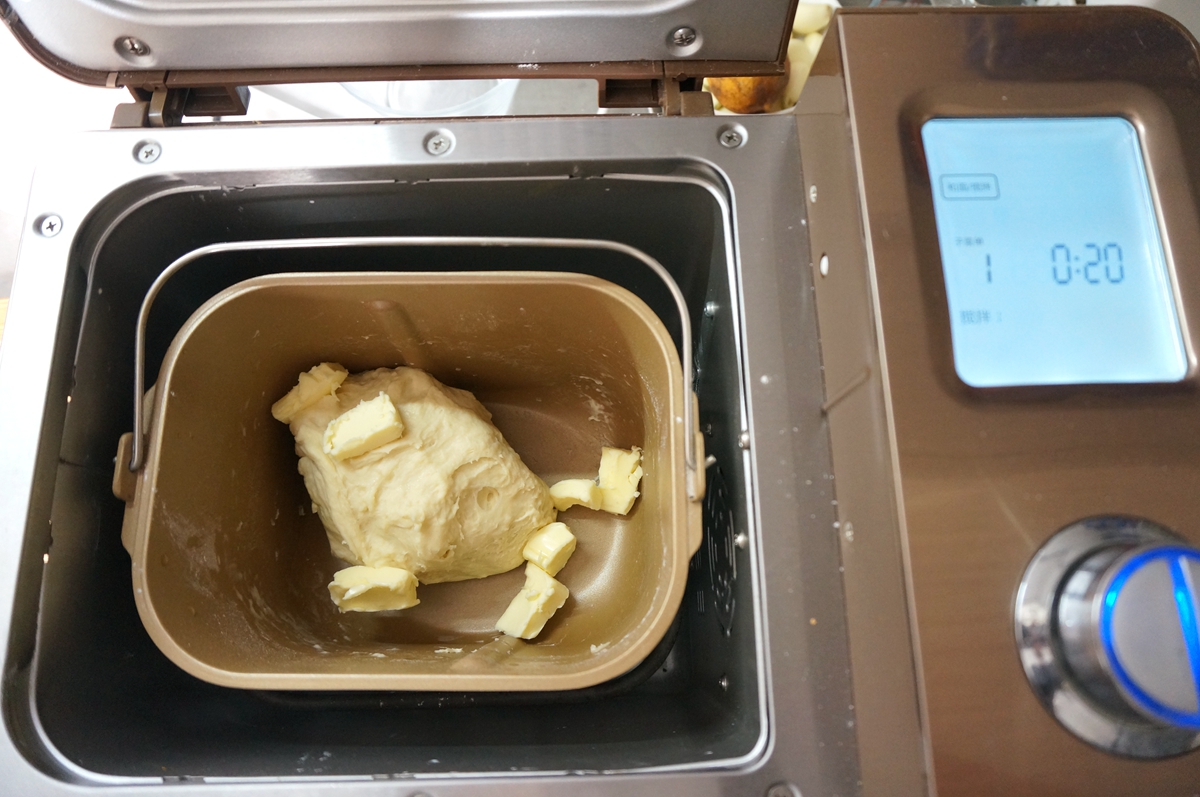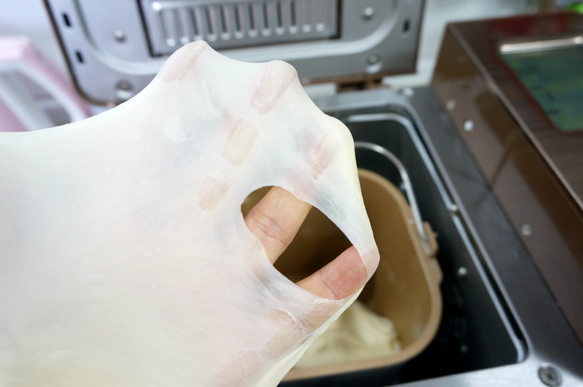 面包好吃揉面和发酵是关键。不管是机器还是手工揉面,都要揉出手套膜,这样的面包才有咬劲儿。决定出膜的因素很多,配方和温度是关键。根据面粉的吸水率来调整液体量,牛奶比水浓,所以同一个配方中的水换成牛奶,牛奶量要适当增加;面团中因为放了发酵粉,揉面摩擦产生的热量会促进其发酵,所以要控制面团温度。提前冻一块冰,用之前泡水,取其冰水来揉面,或者将所有材料都冰箱冷藏后再使用,都是延缓面团长温的好方法。