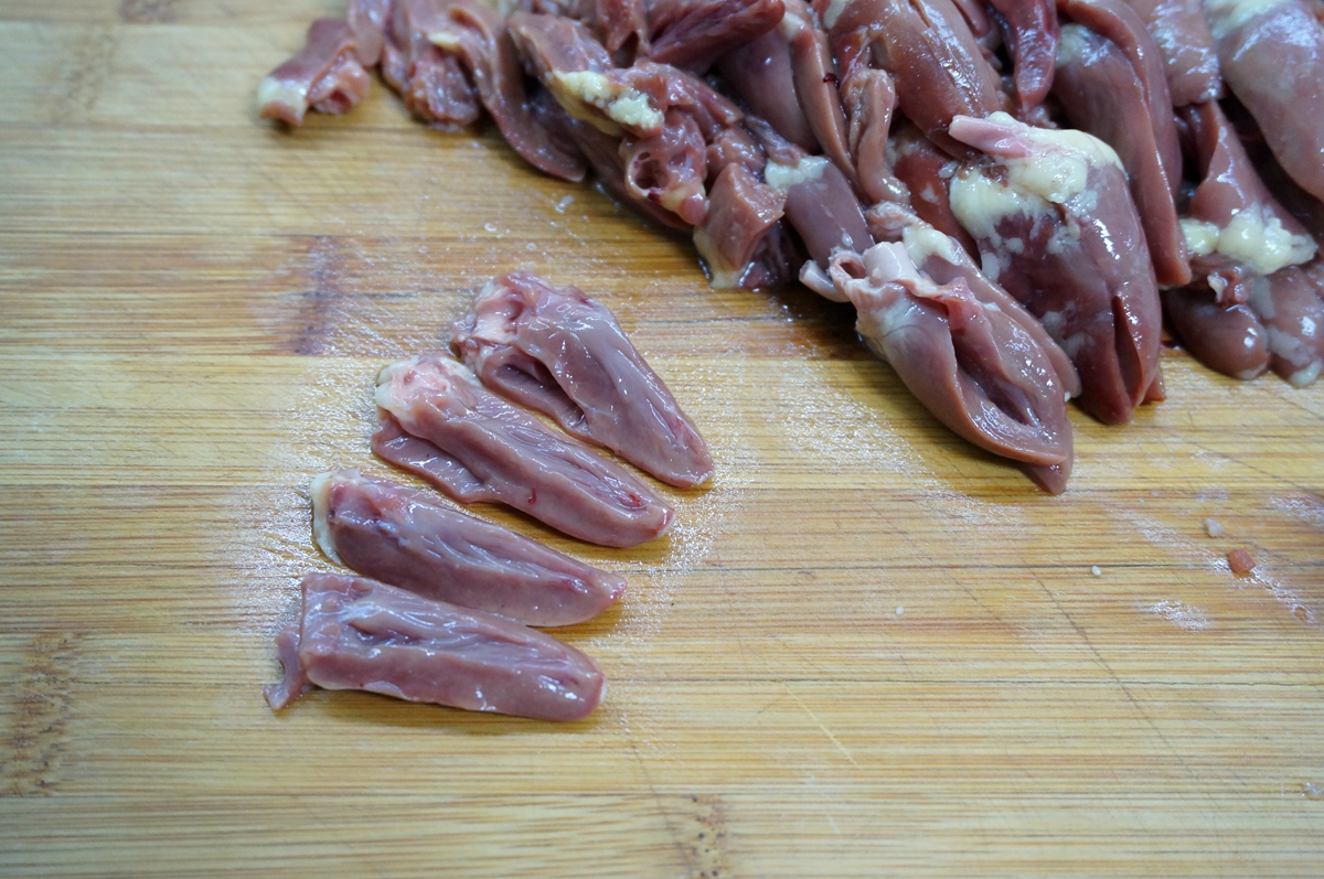 要说鸡身上最有嚼劲的一块肉当属鸡心。鸡心也就是鸡的心脏,因为它日夜不停地工作着,因此也是最强大的一块肌肉。鸡心的吃法很多,像卤、炖、烤,一般都是整个的,看着玲珑可爱,吃起来也过瘾。但今天我做的爆炒鸡心却需要改个刀,这样才能快速成熟。