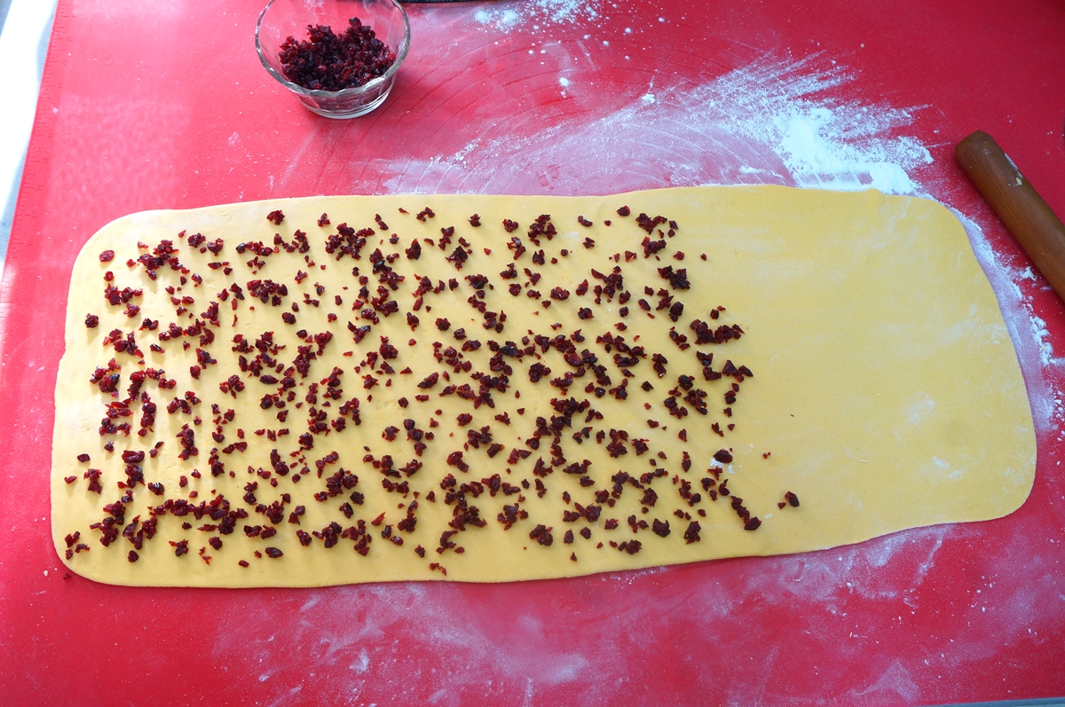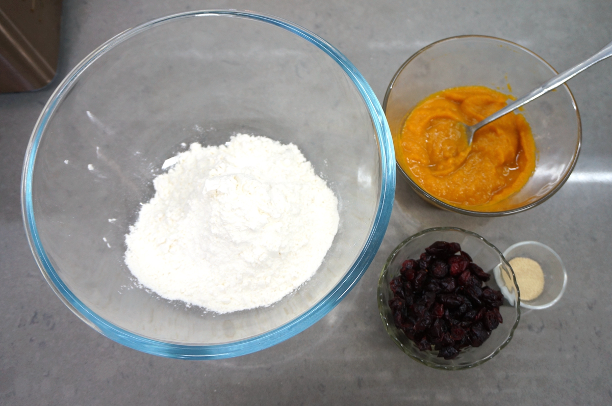 材料:中筋面粉200克,南瓜泥160克左右,干酵母2克,蔓越莓干80克,植物油适量