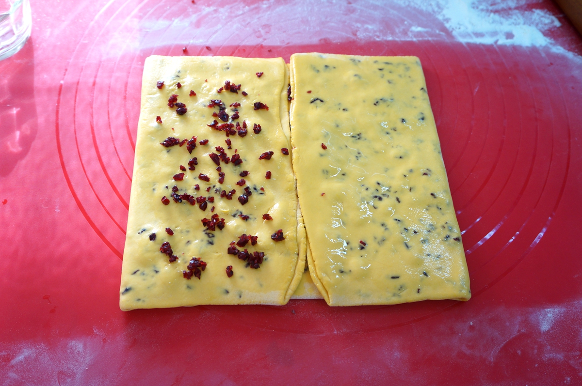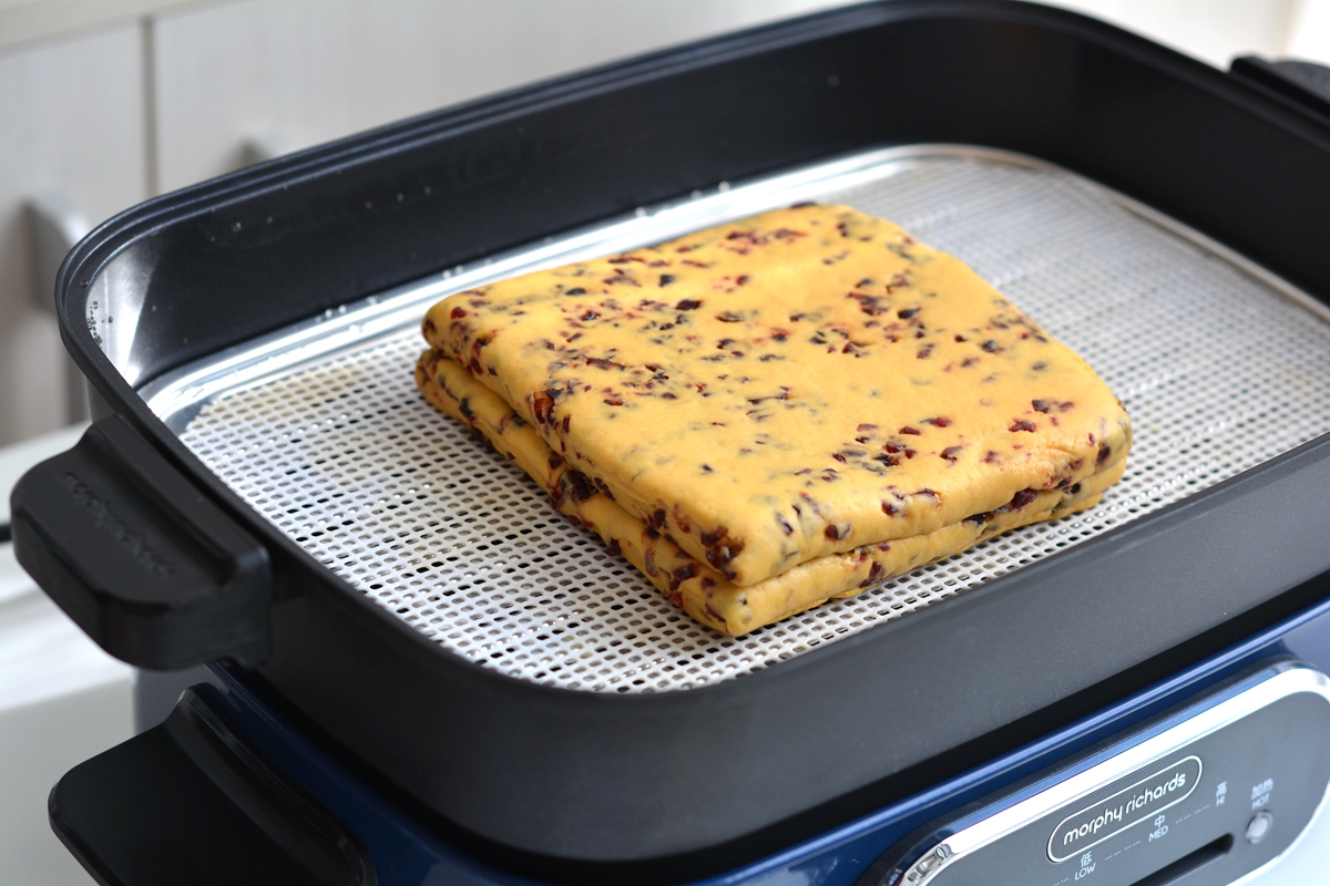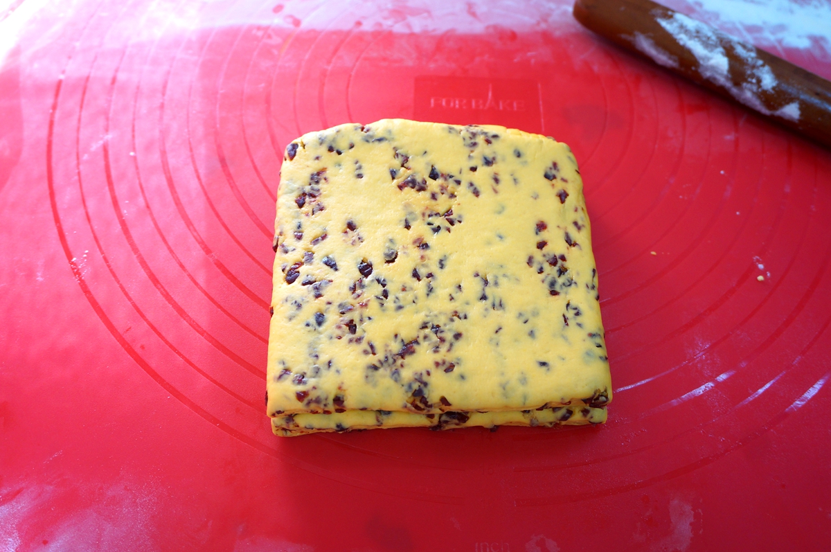 前段时间我做了咸蛋黄的千层蒸糕,因为折叠的方法,在边缘处会有一些没有夹层的现象,所以这次我用了面包中丹麦起酥的折叠方法,具体的操作可以见制作过程,这样简单一变,边缘处就没有那么多留白了。方法传授给各位了,至于口味和配料,那就根据自己的喜好来调整吧。红薯的、胡萝卜的、菠菜汁的、紫薯的,随意变化。关于这个叫饼或者糕倒不重要,相比饼来说,糕更偏于点心,而且有一定的厚度。