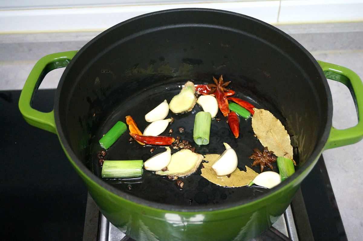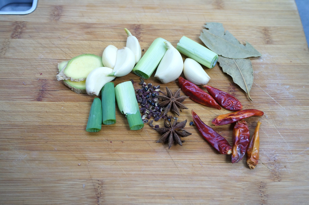 卤材料:鸡心一盘,鸡胗一盘,干红辣椒6个,大蒜1头,大葱半棵,姜1块,八角2颗,花椒1撮,香叶2片,生抽适量,老抽少许,盐少许,料酒适量