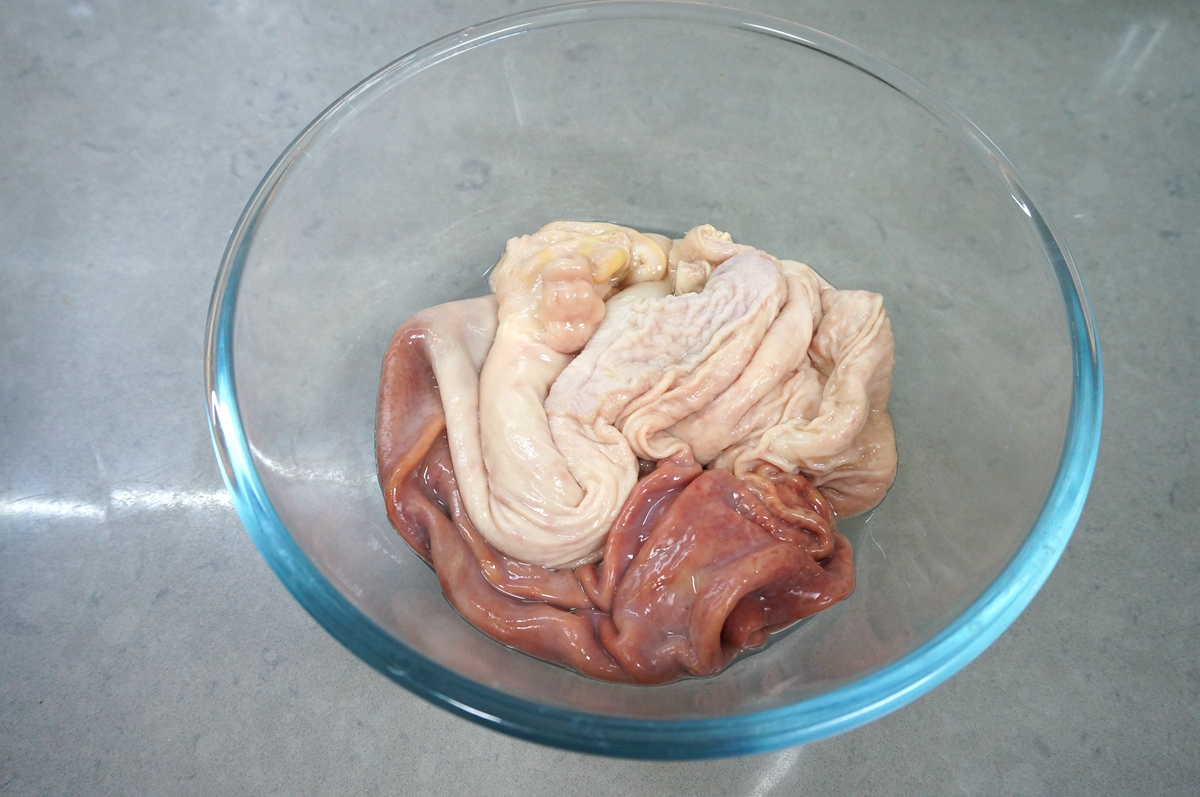 进入冬天,我家每周都得喝一次鸡汤,第一顿很隆重,剩下的鸡汤我会用来煮面条、水饺、白菜豆腐,鸡肉拆下来凉拌着吃,总之物尽其用不浪费。因为是我千挑万选的煲汤专用鸡,连骨头都梆梆硬,用牙齿根本嚼不动。煮好的鸡汤上面会浮着一层黄黄的油,和小时候家养的那味道简直太像了。鸡汤我也换着花样煲,今天的汤里我放了猪肚。猪肚就是猪的胃,含大量钙、钾、钠、镁等微量元素,有补气血、健脾胃等功效。这俩凑一起,鲜上加鲜还不油腻。