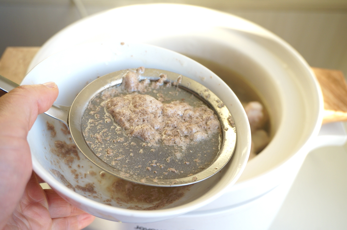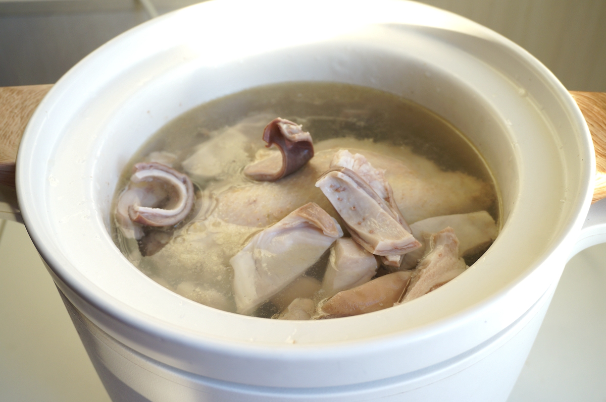 鸡入凉水汤锅中,煮开后将浮沫撇出,想要鸡汤鲜美,不要焯水;