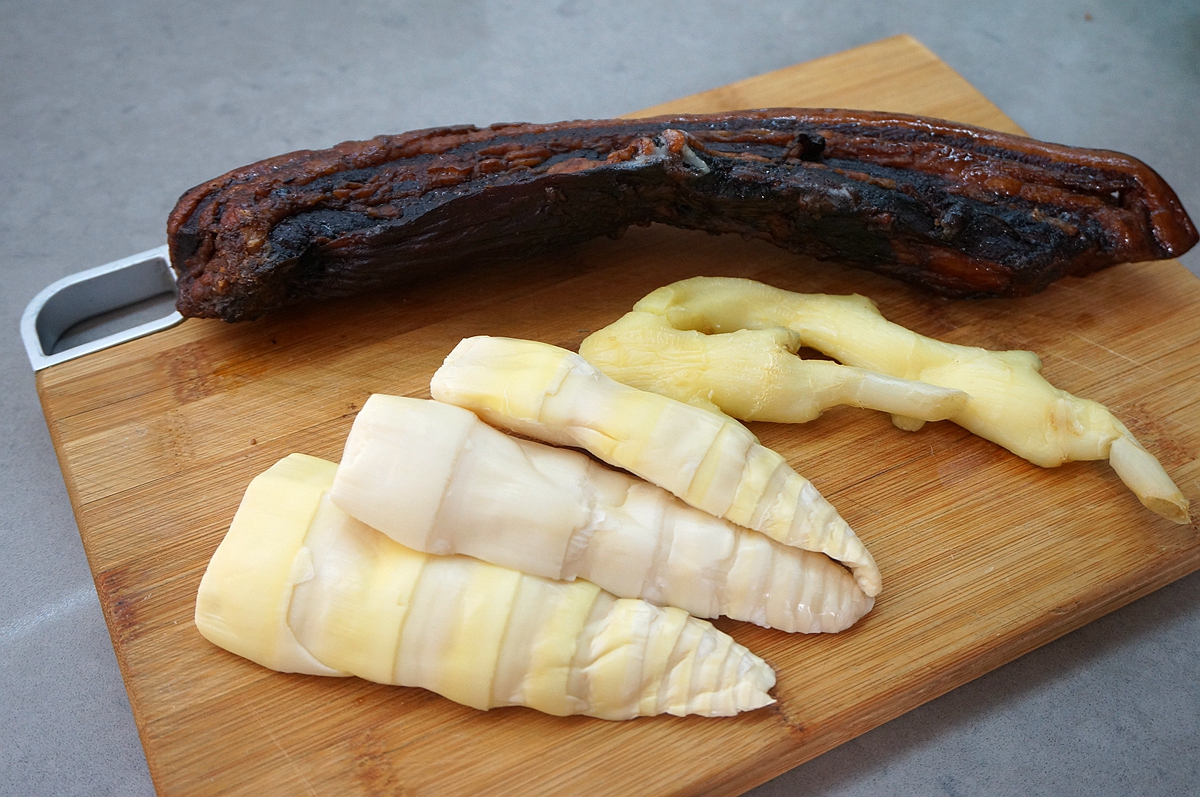 桂林距离北京有1900多公里,前些日子去桂林旅游,特意抽出半天时间去逛了市中心的一个大型菜市场。那里的的腊肉真不错,买了好几条带回北京,又顺手买了两箱酸笋、酸菜、酸豇豆、各种剁椒、豆腐乳。腊肉可以挂起来保存,而这些酸菜只能放在冰箱里保存。所以只要一拉开冰箱门,那浓浓的桂林味道就扑面而来,似乎在提醒着我赶快把它们做成菜。今天我就用这些桂林食材做个干锅腊肉酸笋解解馋!