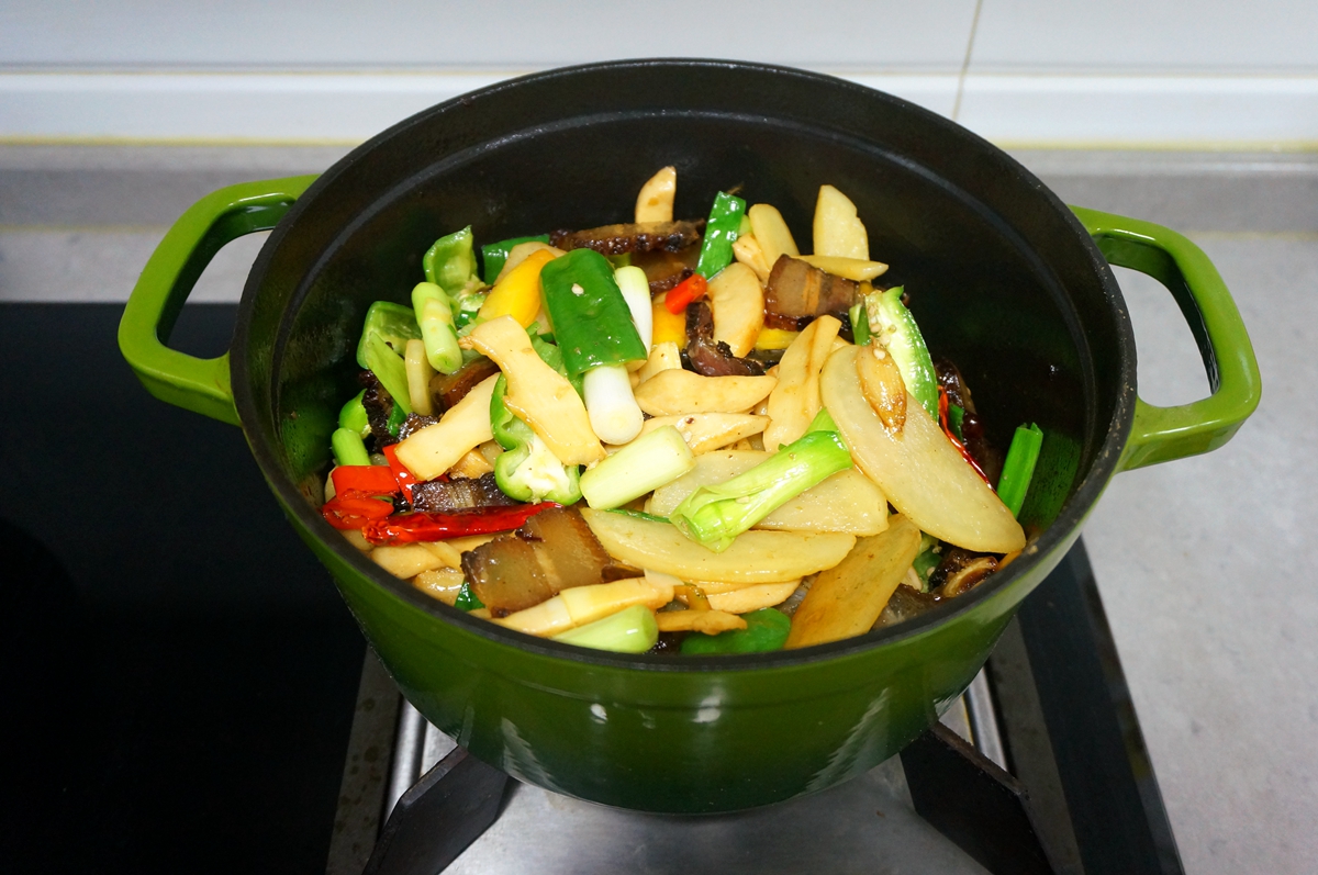 美食腊肉炒酸笋酸菜土豆辣椒 |