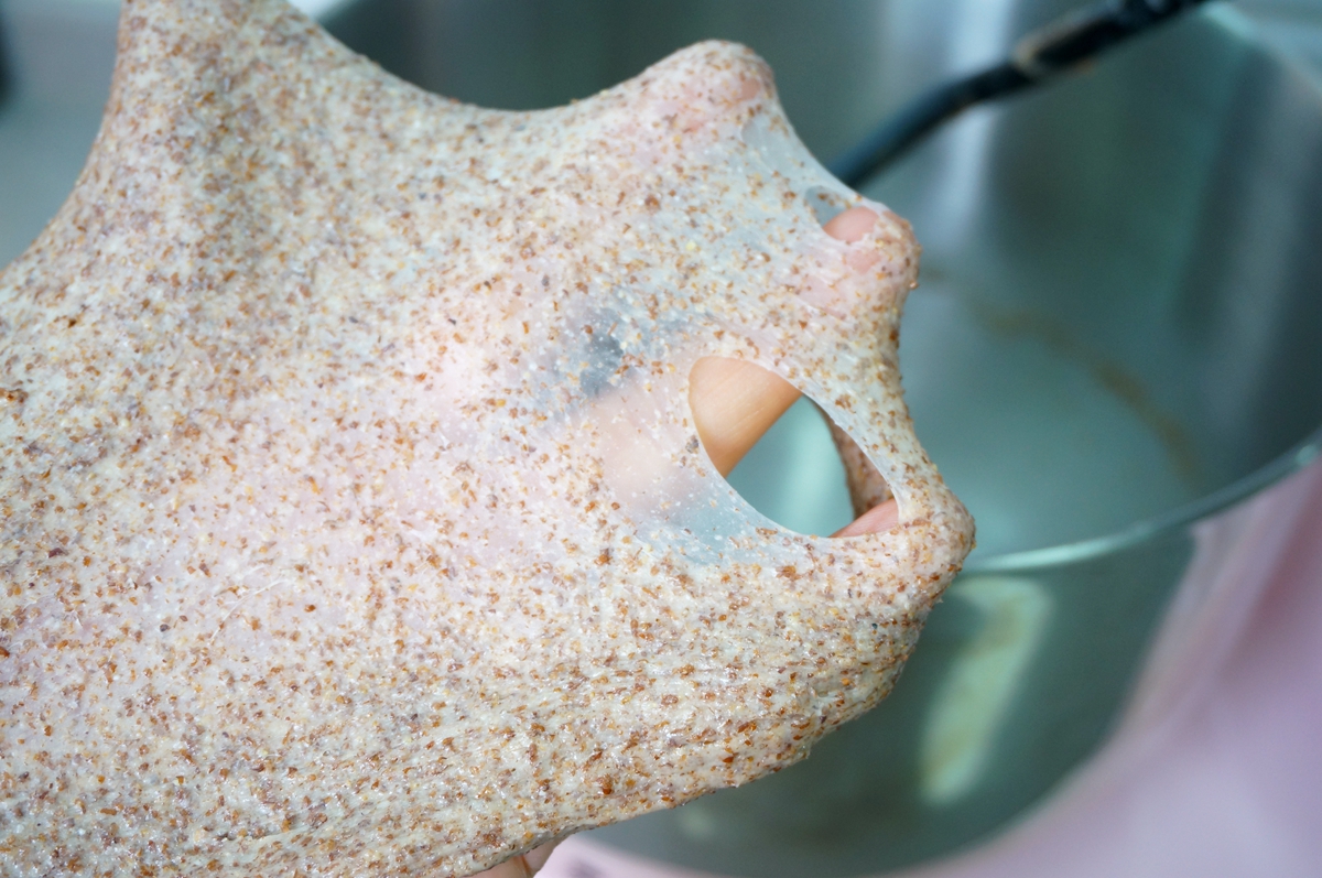 1. 我用的黑全麦粉是配比好的,可直接使用。揉面的工具不管是厨师机,还是面包机,或者手揉,揉出透明有弹性的薄膜,面包才好吃;