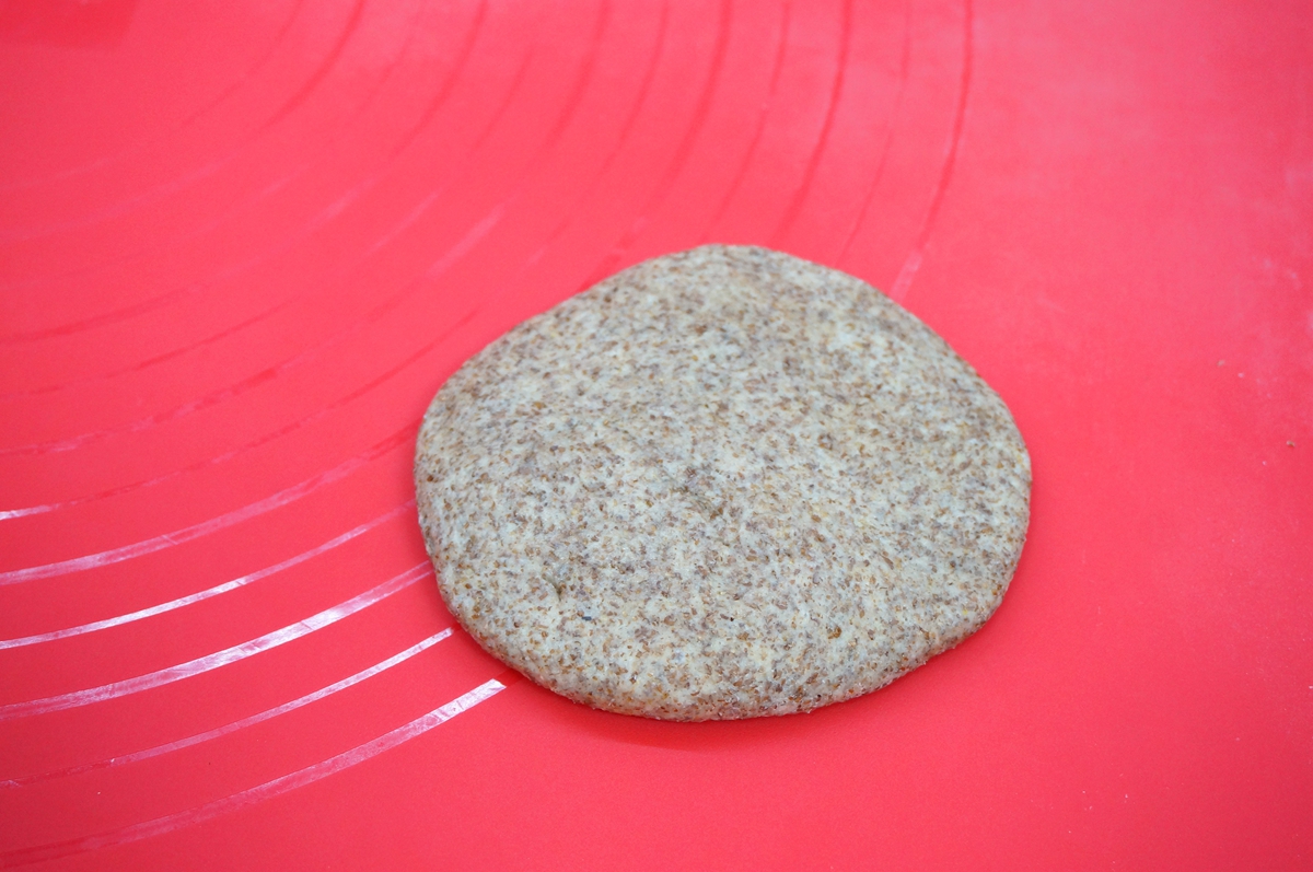 7. 取一个面团,用手拍成椭圆形,无需用擀面杖;