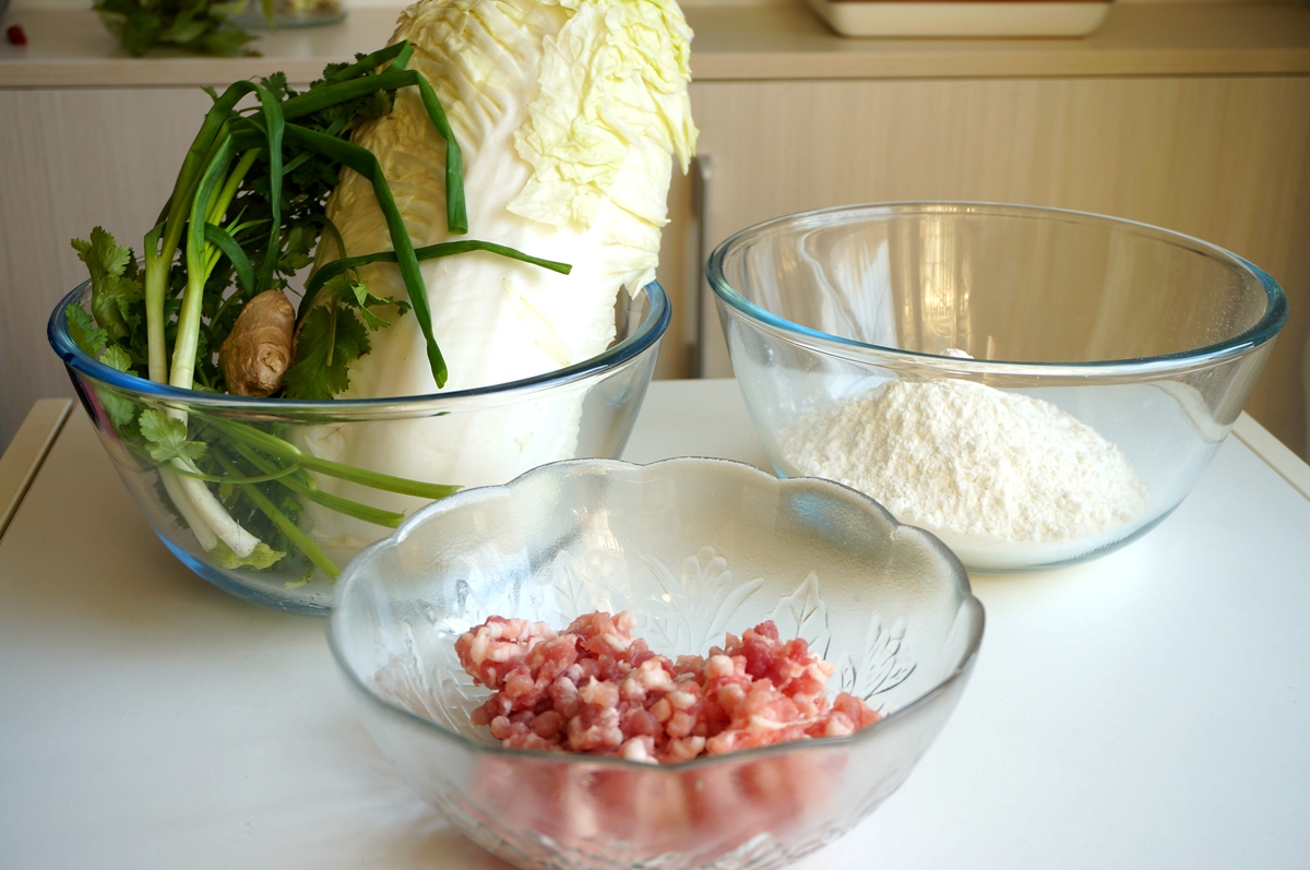 材料:面粉200克,凉水120克,白菜适量,肉馅150克,植物油少许,蚝油少许,盐少许,香葱2棵,姜1小块,香菜1棵,朝天椒1个,醋适量,生抽少许,辣椒油适量