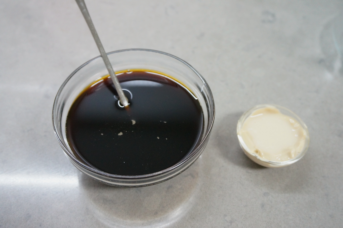 将大部分的热水倒入红糖中,用小勺不断搅拌使其融化;剩下约为15左右的热水晾凉后倒入酵母中,使酵母溶解,千万不要用热水,否则会把酵母烫死,面团就发不起来了;