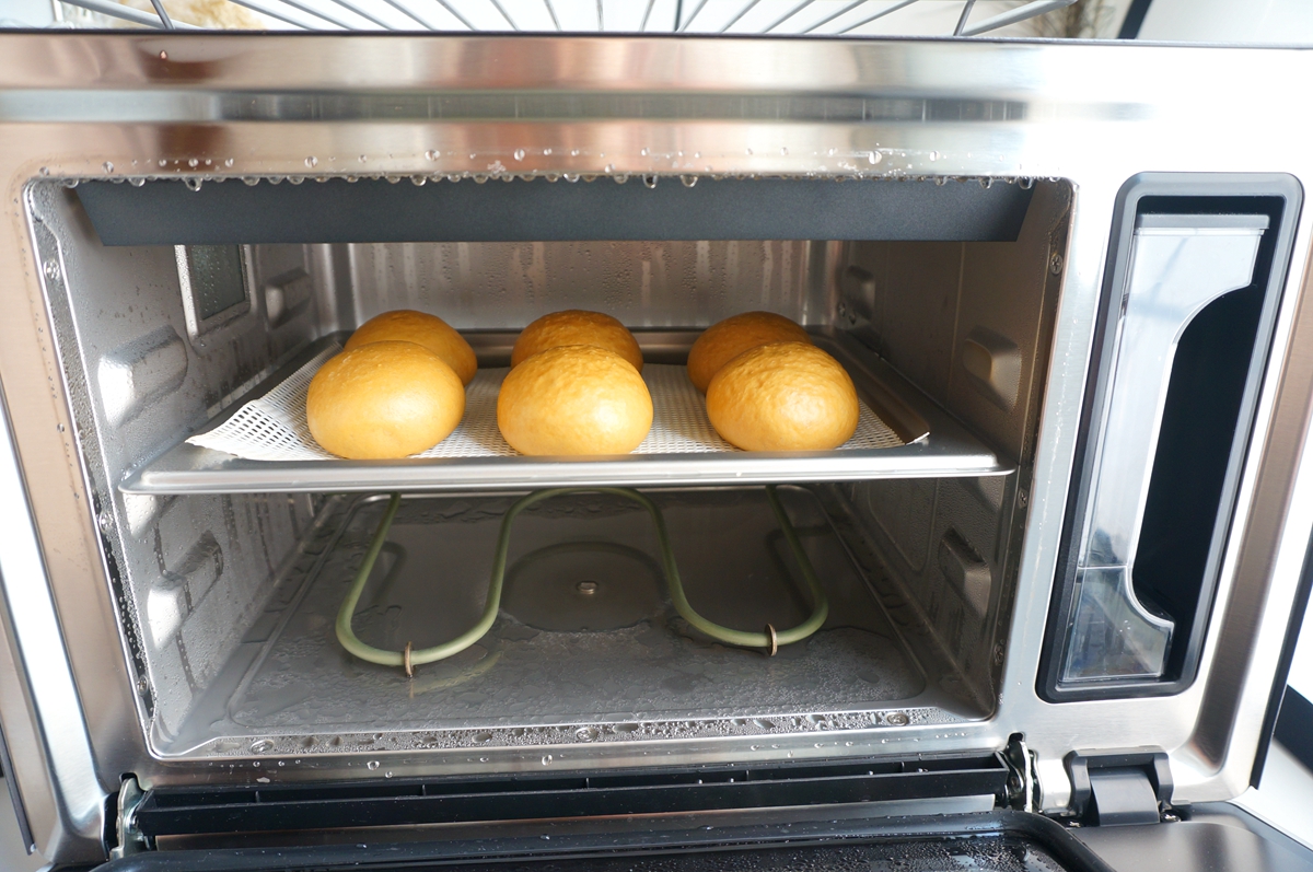选择“蒸”功能,从一开始到结束,100度,定时25分钟,时间到后焖5分钟后再开箱门,防止因为骤冷而导致馒头表皮变皱。用大蒸锅蒸馒头也是可以的,不一定非得用蒸箱。