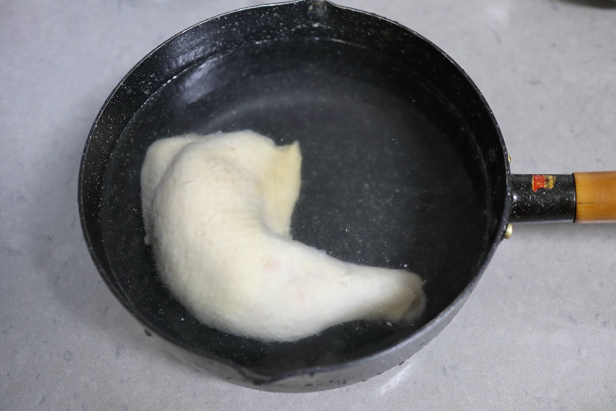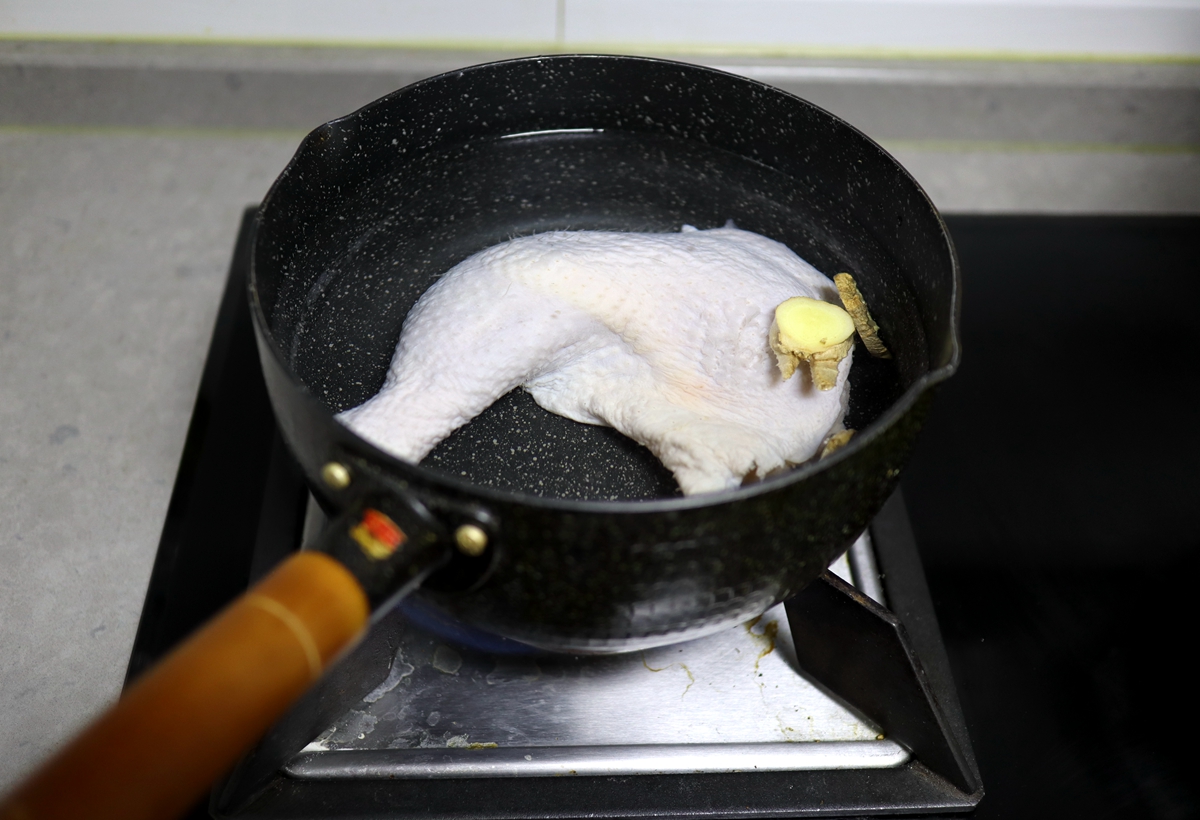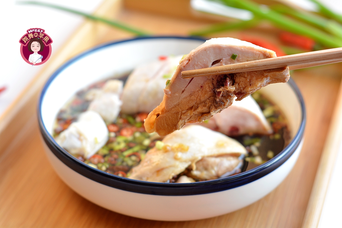 整只鸡不但制作讲究复杂,且其中的碎骨不利于小朋友食用,所以咱就用鸡大腿了。虽然洋鸡腿不是最佳选择,但掌握好两个要点,这家庭版的白切鸡也是越吃越爱吃。鸡肉富含蛋白质,肉质细嫩,脂肪含量少,多吃几口也不怕长肉。只需花上5分钟,浇上酸辣汁,在春节年饭桌上,这皮弹肉嫩的白切鸡腿儿真是一道姑娘小孩解馋、男人下酒的抢手菜。如果孩子不能吃辣,把其中的辣椒去掉即可,或者酱汁单放一碗,吃时单蘸。