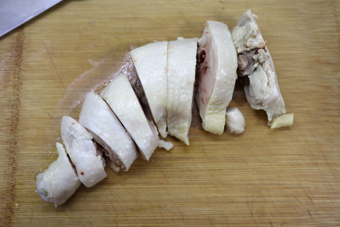 想要鸡肉皮弹肉嫩,不要久煮,主要是靠焖让肉成熟;冲凉水时水流不要太大,防止把皮给弄破;鸡肉剁块时,刀功一定要稳准狠,不要来回来去在鸡肉上磨蹭,这样才能保持刀口整齐漂亮;鸡肉当时不吃先不要剁块,一直放在凉水中浸泡,可保持鲜嫩。