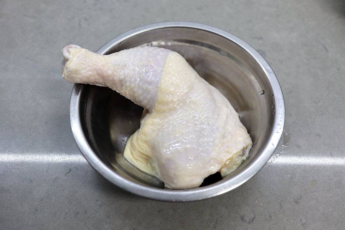 1. 鸡大腿1只,也可以用整只鸡或者鸡胸肉,鸡大腿相对来说肉多骨头少,肉有弹性;