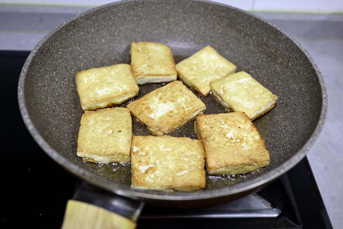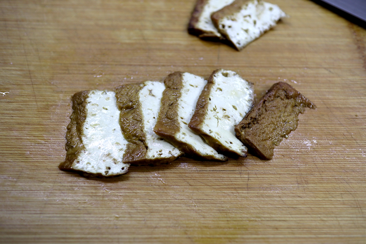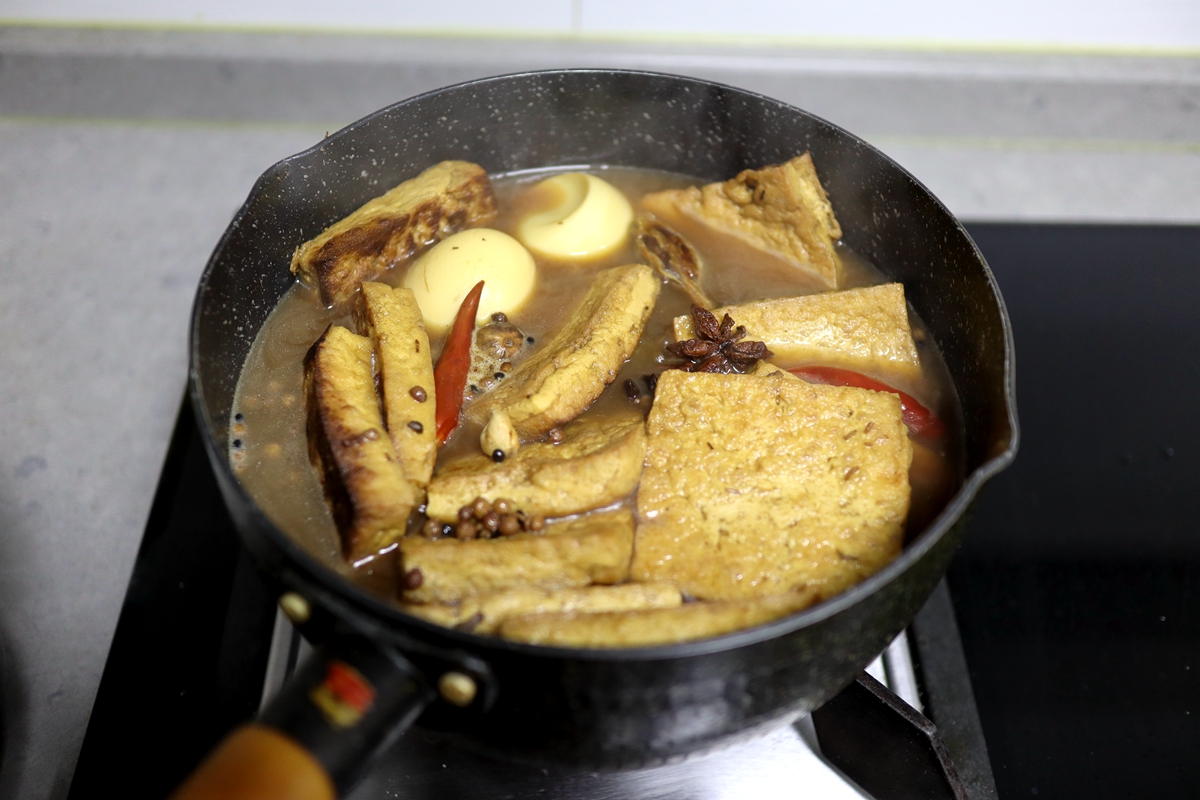 豆腐宜用质地结实的北豆腐,成型不易碎,切厚片油煎出薄薄一层破皮更利于成型;因为豆腐不易入味,卤水中可多放一点盐,想要热吃可多煮一会儿,想要凉吃煮10分钟后关火,泡卤水中一夜可充分入味。