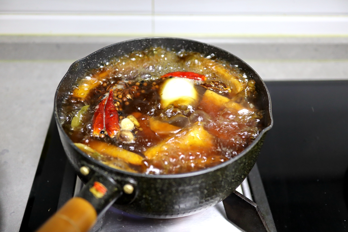 材料:北豆腐1斤,鸡蛋2个,植物油少许,酱油、生抽、蚝油、盐,八角、花椒、干红辣椒、香叶、草果、白蔻、水