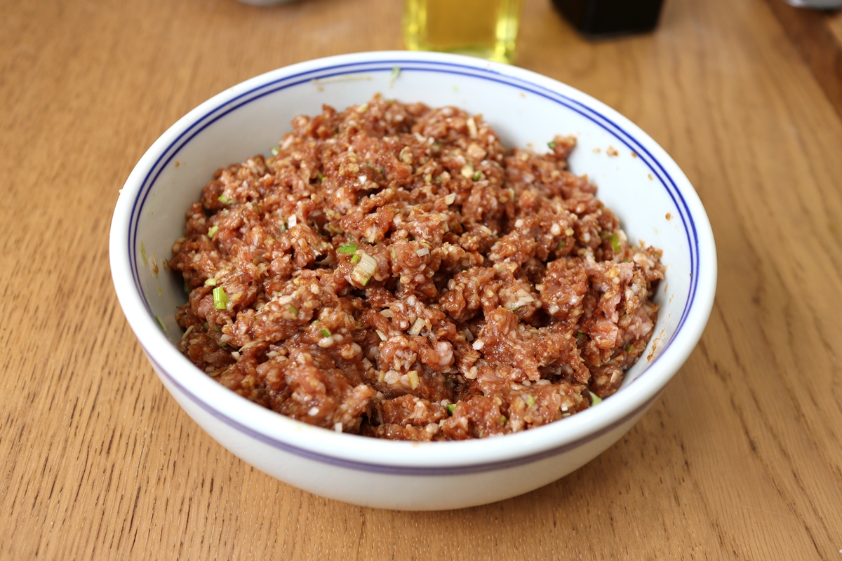 材料:中筋面粉,凉水,猪肉,白菜,植物油,酱油,盐,葱,姜