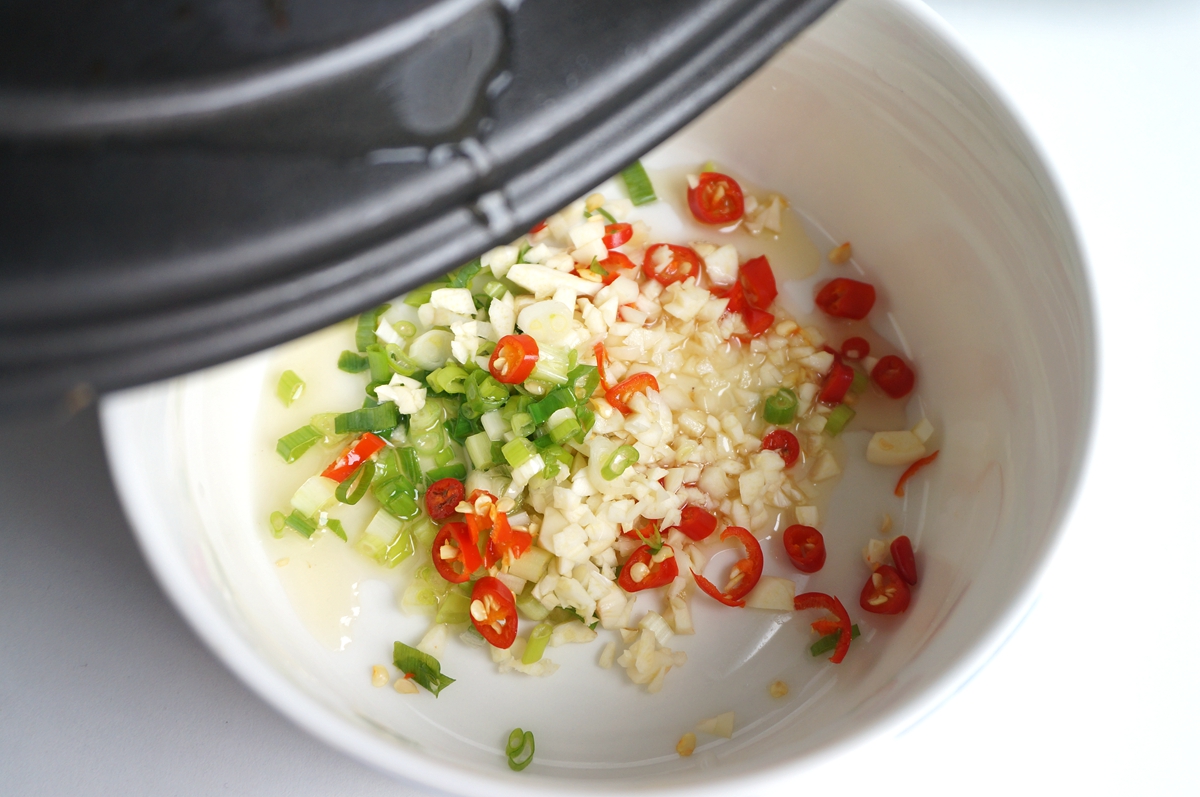 材料:方便面2块,香葱2棵,大蒜3瓣,小米辣2个,香醋适量(约40克),酱油50克,盐少许(根据生抽的咸度和口味来调整),植物油少许
