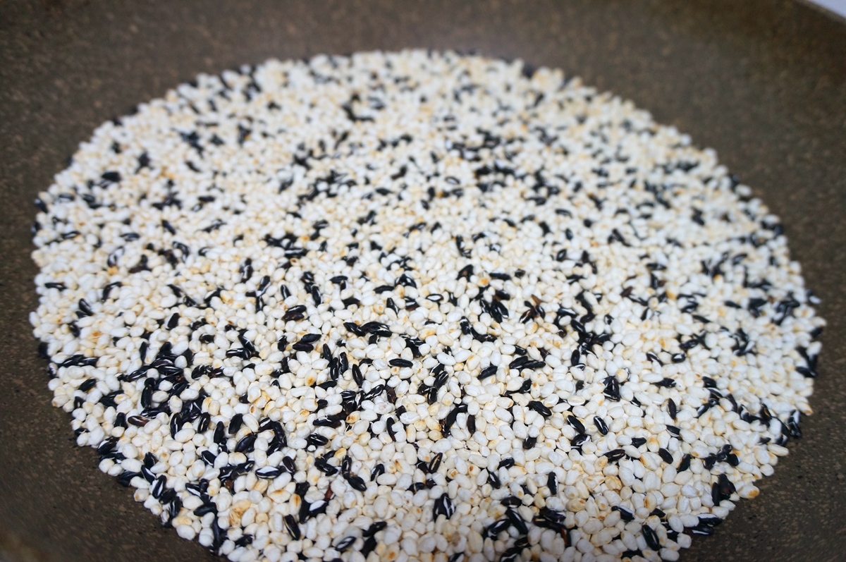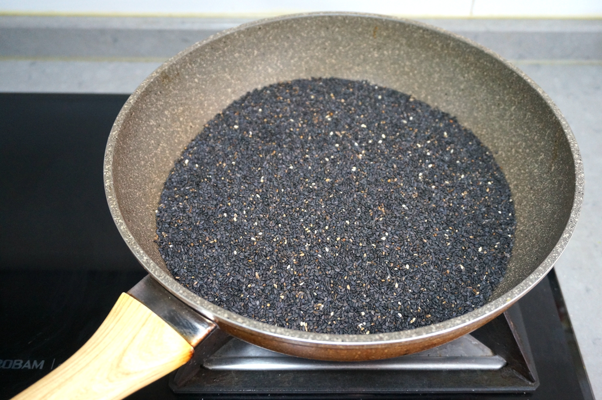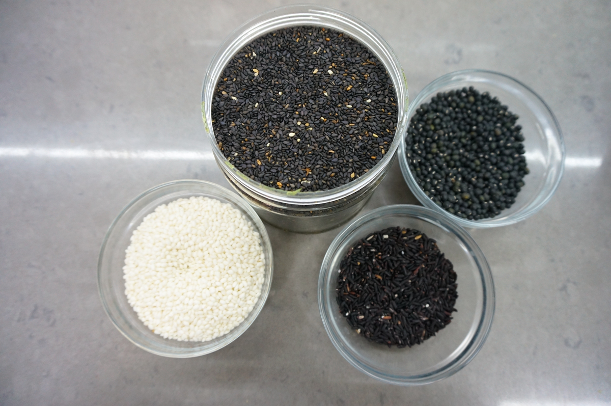 材料:黑芝麻400克,黑豆120克,黑米120克,糯米250克