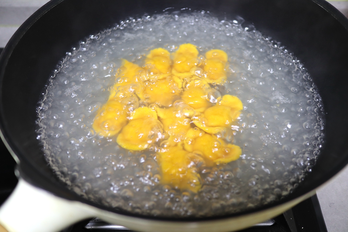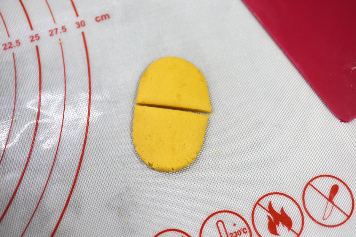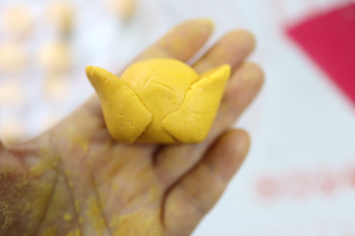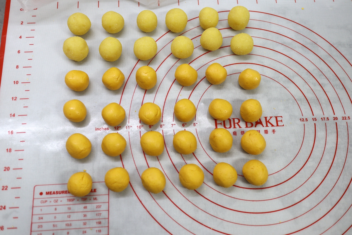 南瓜泥趁热倒入糯米粉中揉成圆,可以增加糯米的粘性;单独煮一块再揉进面团中,面团不裂不破;不用担心金元宝的两翼不光滑,煮熟后面皮与汤圆能很好的融合在一起,看着非常光滑。