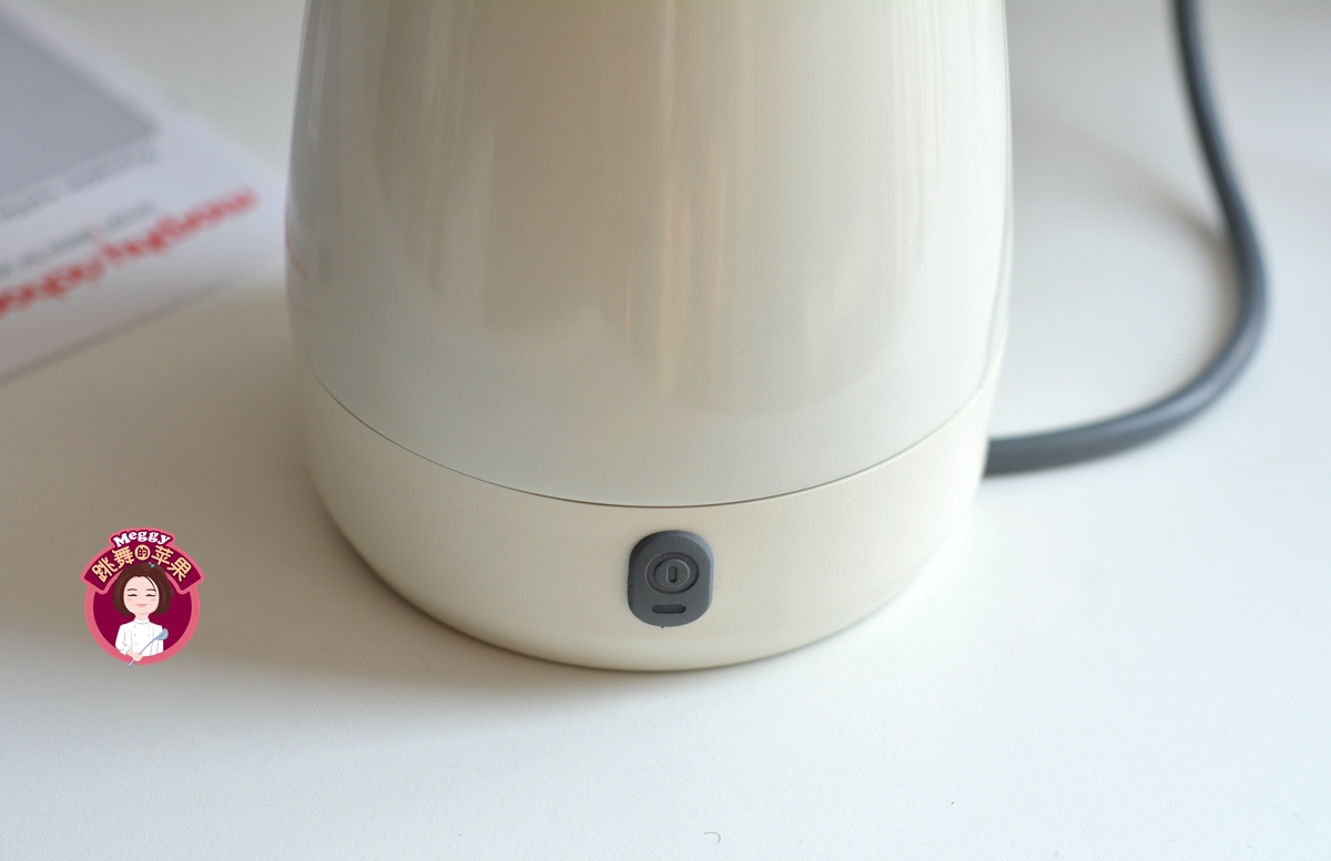 正面底部的按键只需轻轻按一下,水壶便开始工作。