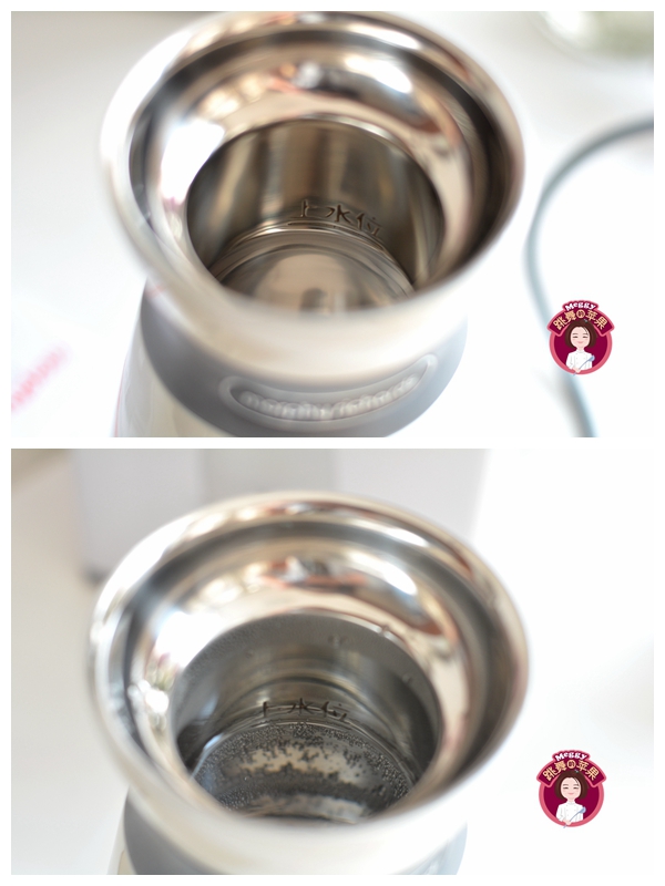 闪闪亮的316不锈钢材质比常见的304材质更胜一筹,耐腐蚀,无异味,我倒了普通的自来水,500毫升只需3分钟便煮沸了,加热迅速且没有一丝水锈痕迹。