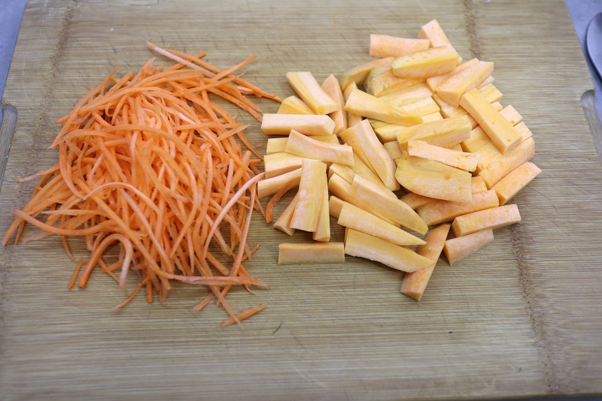 材料:排骨1000克,扁豆600克,土豆1个,胡萝卜2根,葱半棵,青蒜3棵,大蒜1头,姜1块,油适量,酱油适量,蚝油适量,老抽少许,盐适量,水适量,面条600克