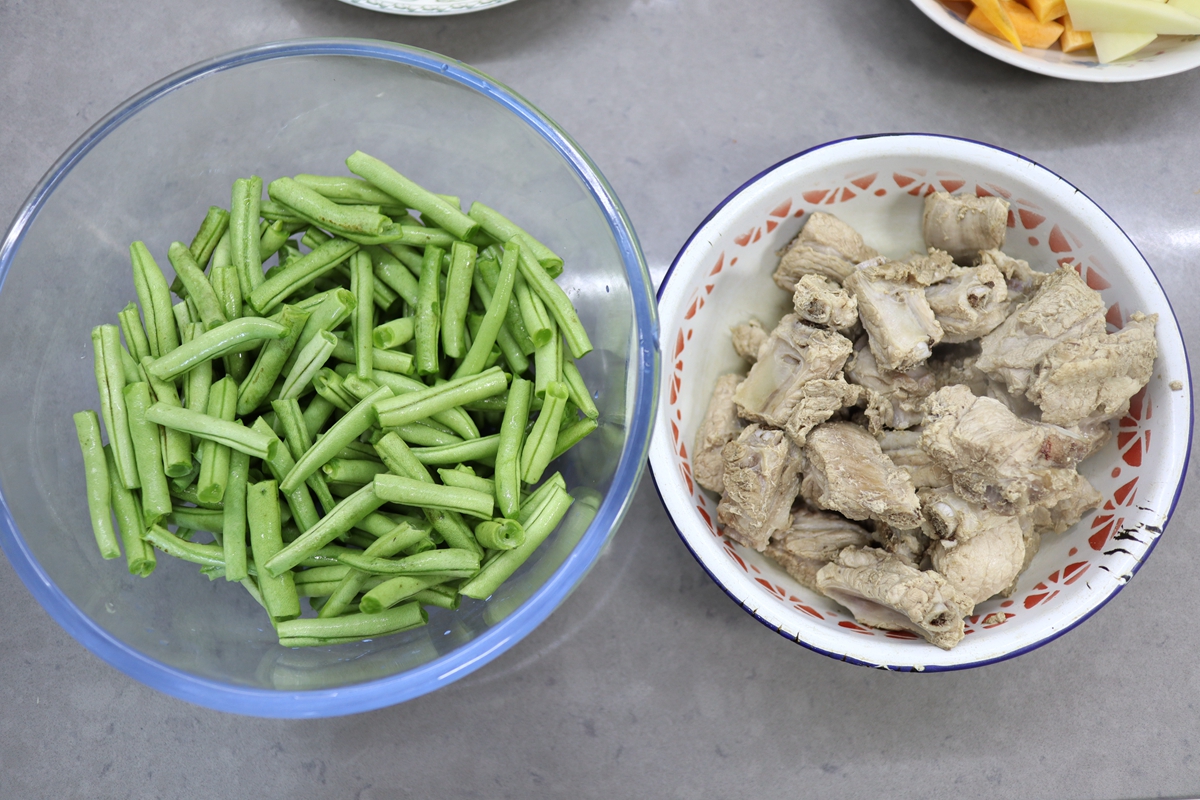 焖面的方法主要有两种。一种复杂些,要同时点两个灶火,准备两口锅。一口锅蒸面条,一口锅炒排骨扁豆。排骨扁豆炒好后,倒适量水烧开,再把蒸熟的面条放在排骨锅里同焖。此做法对我这么会过日子的人来说浪费能源,还要多刷一口锅,所以我更喜欢另一种方法,也就是我接下来的这个制作方法。这个方法省时省事,口感更加丰富,想吃漂亮入味的排骨扁豆焖面,一定要留意制作小技巧噢!