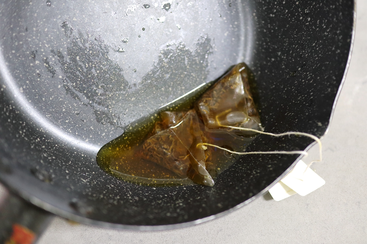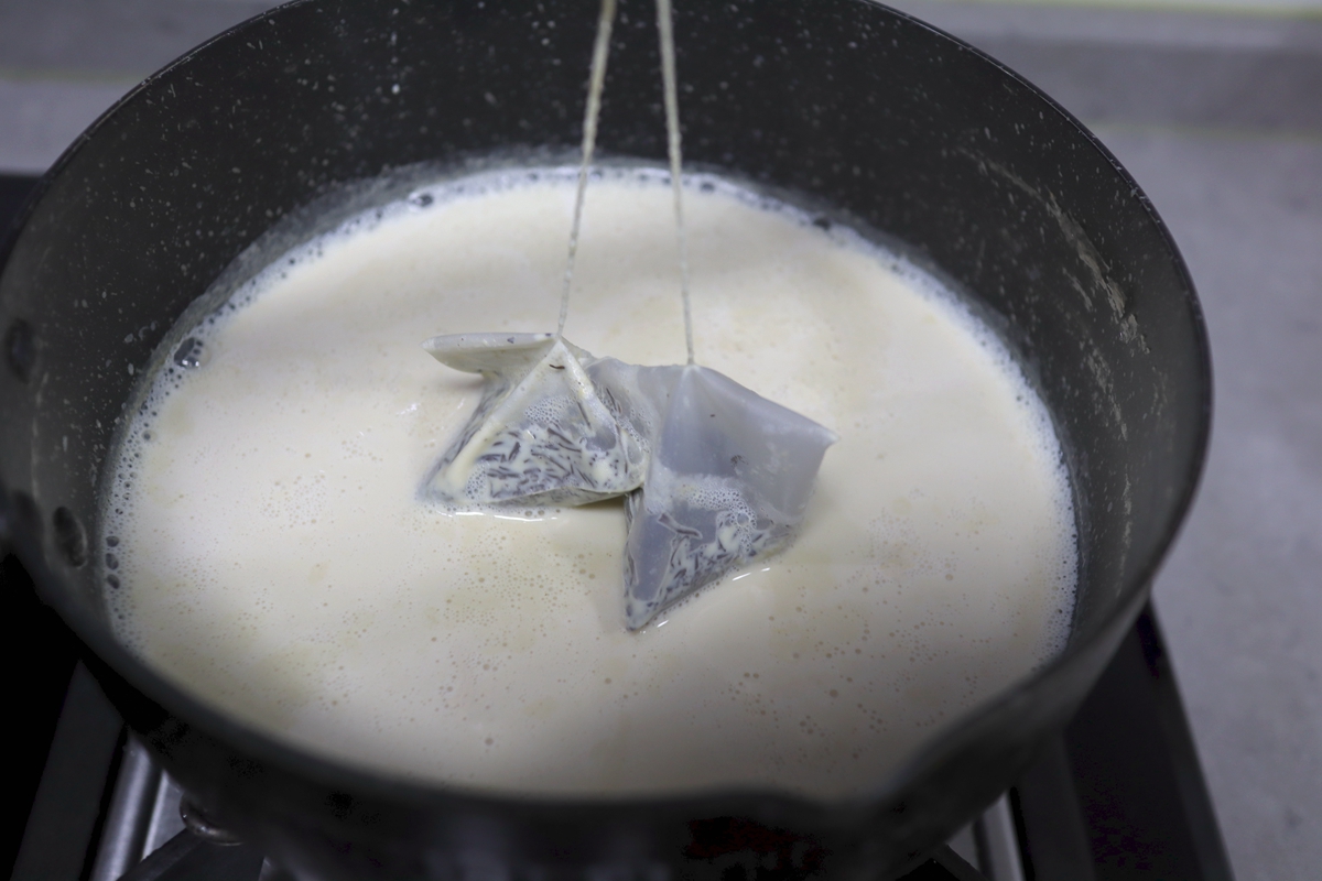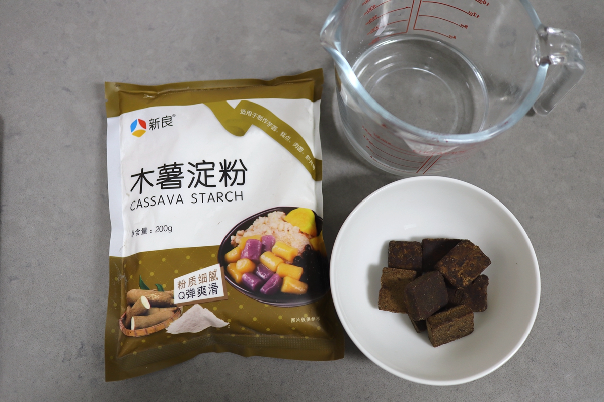材料:木薯粉170克,红糖50克,凉水100克,纯牛奶500克,红茶包2袋