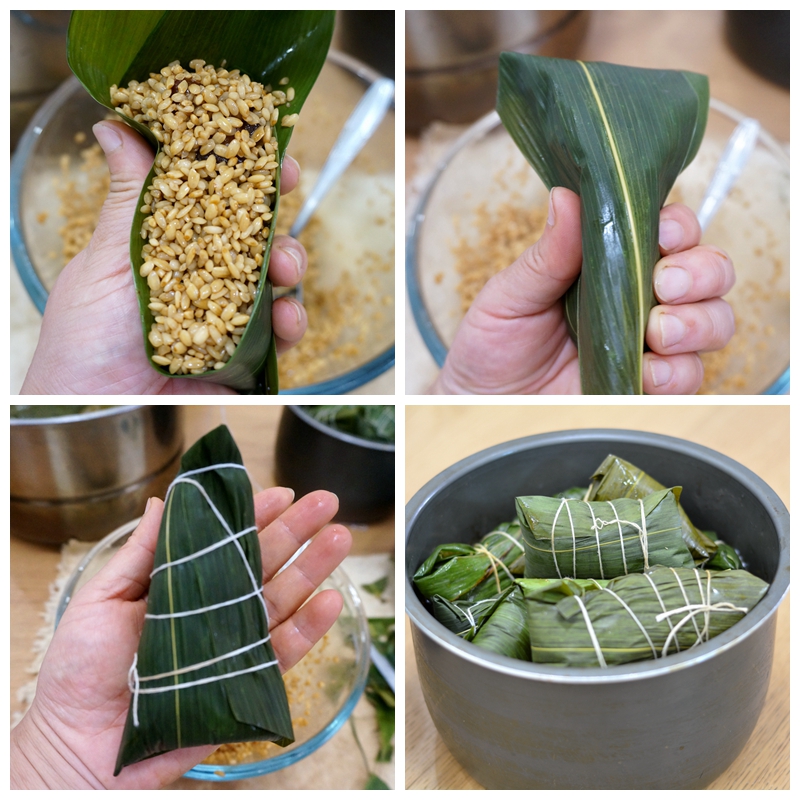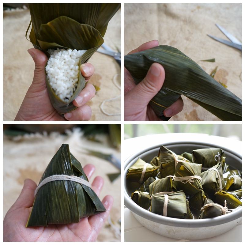 工具:粽子叶,小绳,剪刀,高压锅