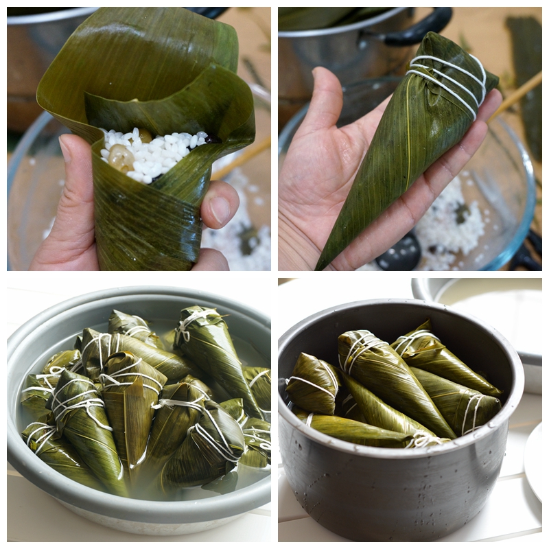 7. 包好的粽子可以直接放在盛了凉水的高压锅中,也可以放在一个水盆里泡着;