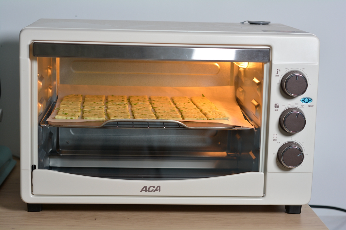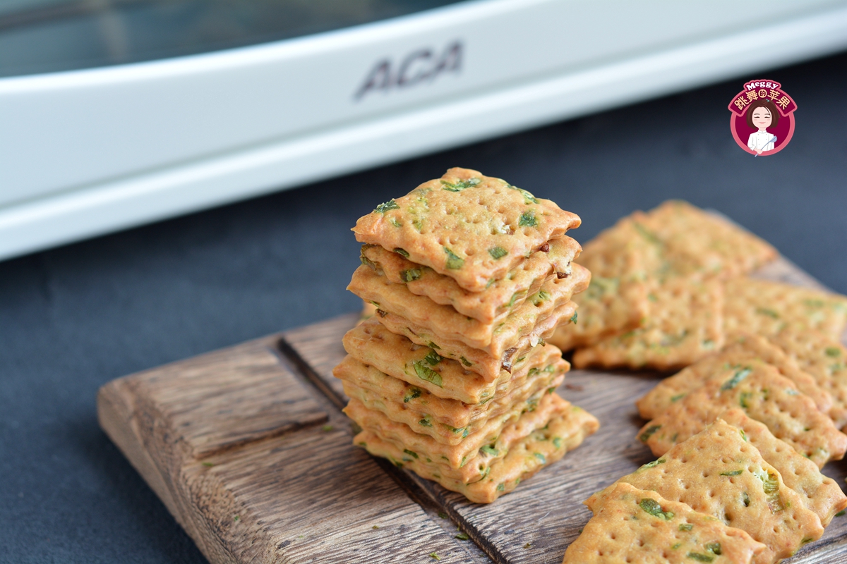 可巧,那天看到美食群的姐妹发了这道苏打香葱饼干。我以前做过香葱咸味曲奇,那味道至今还停留在舌尖上,所以我想这款苏打香葱饼干肯定也错不了。仔细研究了一下配方,不难;试着做了一下,除了调整了牛奶的用量外,其它都OK。我刚好入了一台ACA MS32G的新烤箱,就拿它试一试吧,效果还真不错。除了温度略微偏高了10度外,其上色非常均匀,中心和四周无差,没得挑。